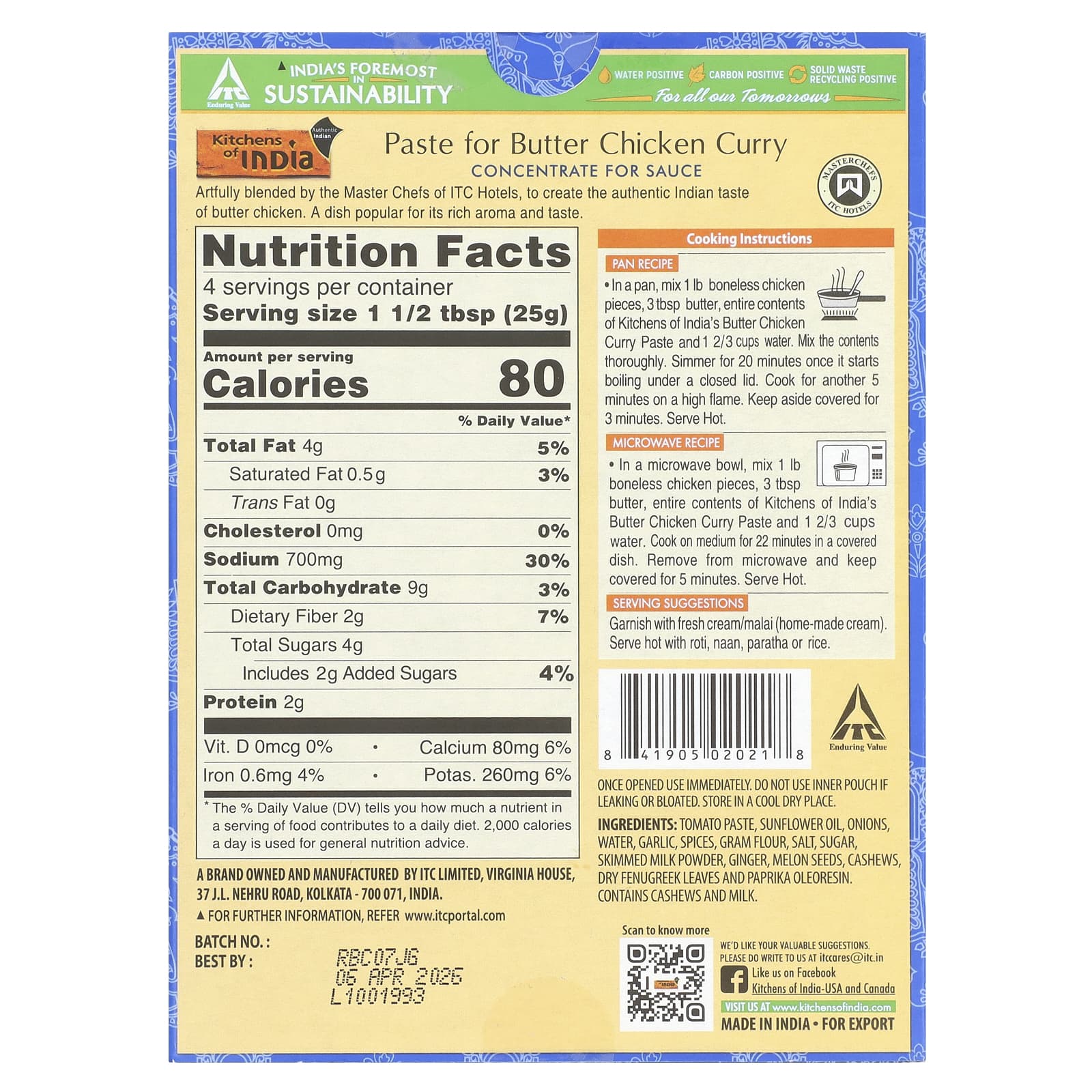 Kitchens of India, паста для курицы в масле, концентрат для соуса, средний, 100 г (3,5 унции)