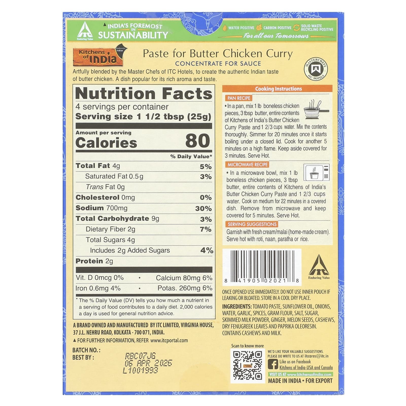 В сковороде смешайте 1 фунт курицы без костей, 3 ст. л. сливочного масла, все содержимое пасты карри для курицы с маслом от Kitchens of India и 1 2/3 стакана воды. Тщательно перемешайте содержимое. После закипания варите на медленном огне под закрытой крышкой 20 минут. Готовьте еще 5 минут на сильном огне. Оставьте под крышкой на 3 минуты. Подавать в горячем виде.