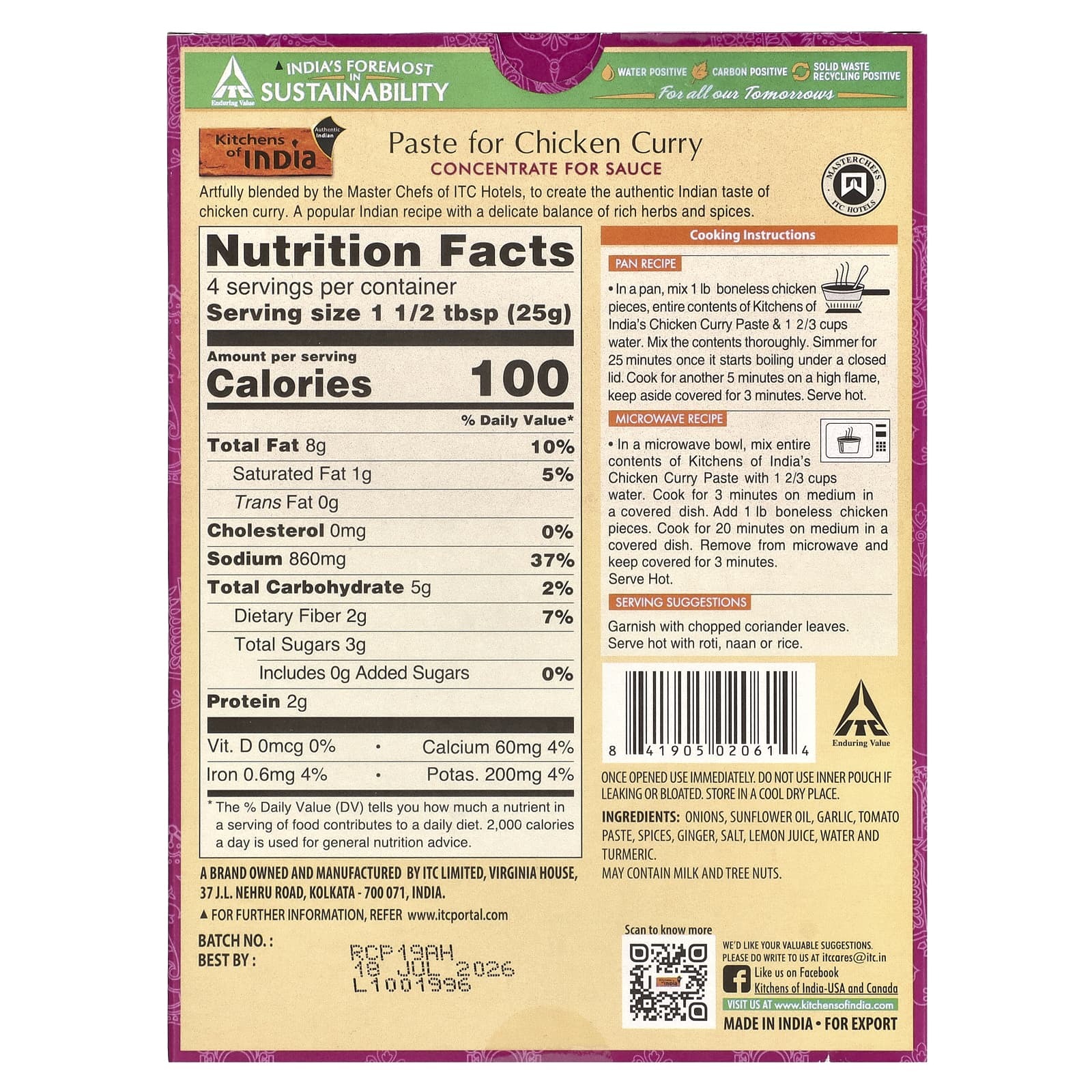 Рецепт для разогревания в микроволновой печи . В миске для микроволновой печи смешайте все содержимое пасты карри с курицей Kitchens of India's с 1 2/3 стакана воды. Готовьте в течение 3 минут на среднем огне в закрытой посуде. Добавьте 450 г (1 фунт) кусочков курицы без костей. Готовьте в течение 20 минут на среднем огне в закрытой посуде. Достаньте из микроволновой печи и оставьте под крышкой на 3 минуты. Подавать в горячем виде.