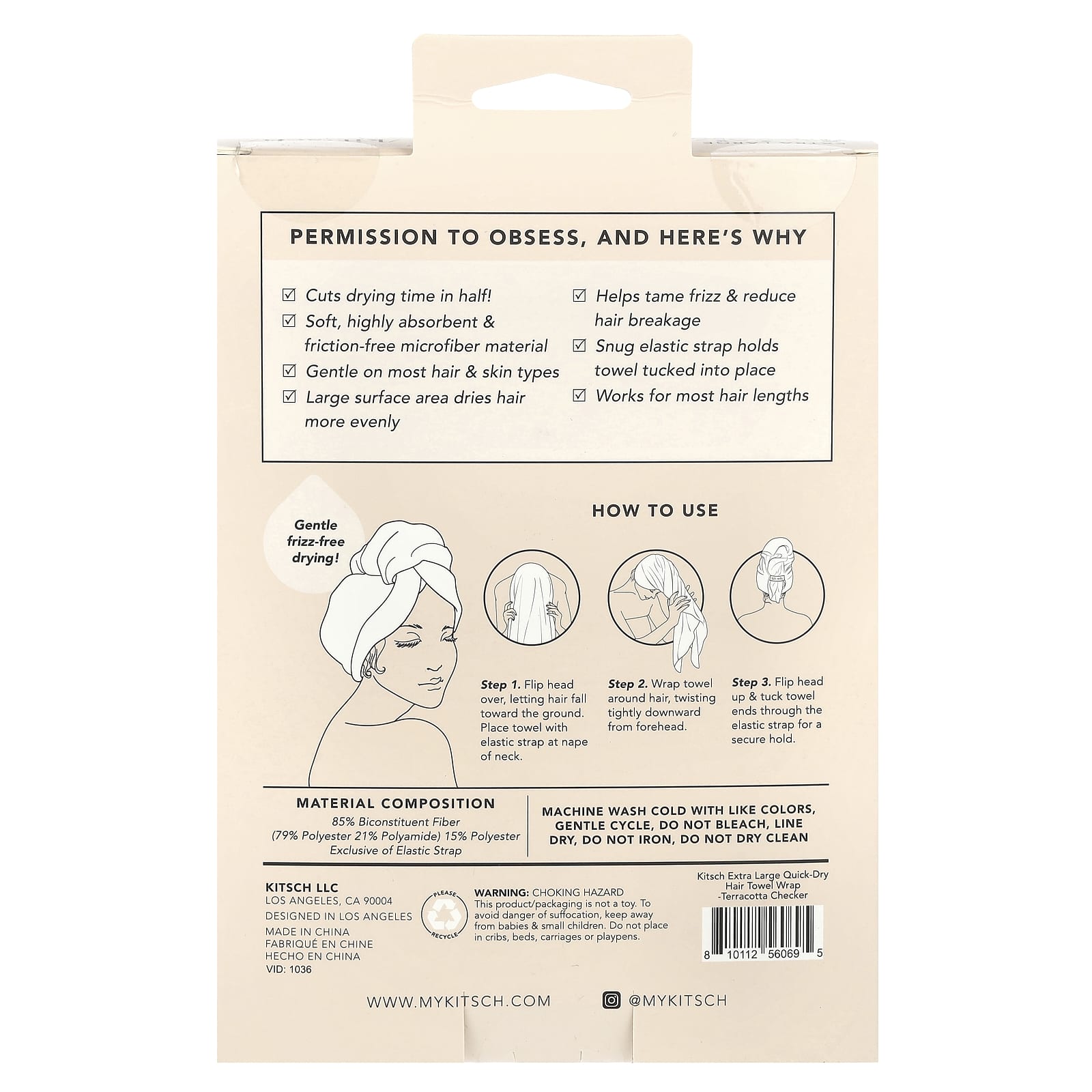 Шаг 3. Поднимите голову вверх и заправьте концы полотенца через эластичный ремешок для надежной фиксации.