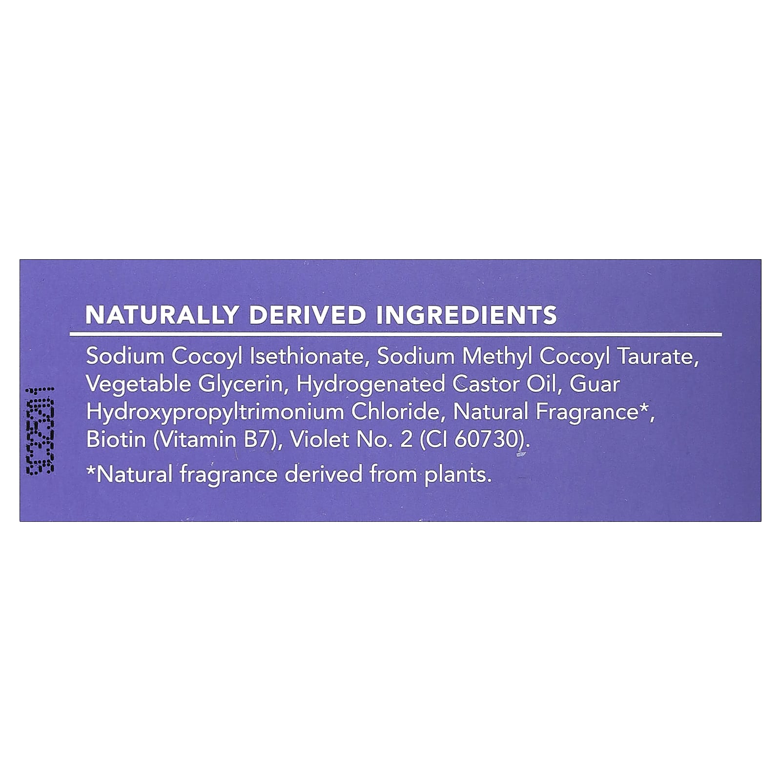 Кокоил изетионат натрия, натрия метил кокоил таурат, растительный глицерин, гидрогенизированное касторовое масло, гуар гидроксипропилтримония хлорид, натуральная отдушка*, биотин (витамин B7), фиолетовый 2 (CI 60730).