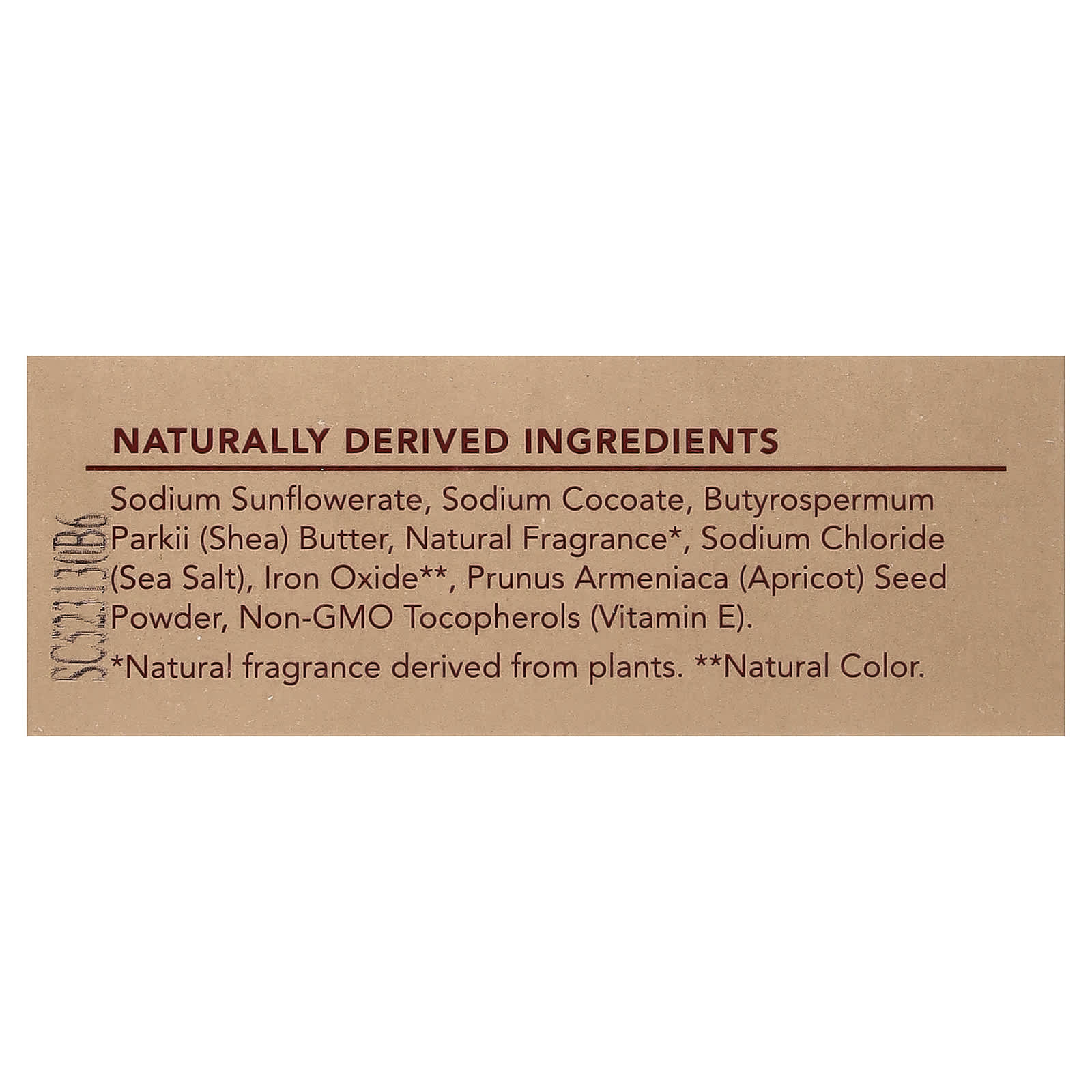 Подсолнечник, кокоат натрия, Масло Butyrospermum parkii (Ши), натуральная отдушка*, хлорид натрия (морская соль), оксид железа**, порошок из семян абрикоса (Prunus armeniaca), токоферолы без ГМО (витамин Е).