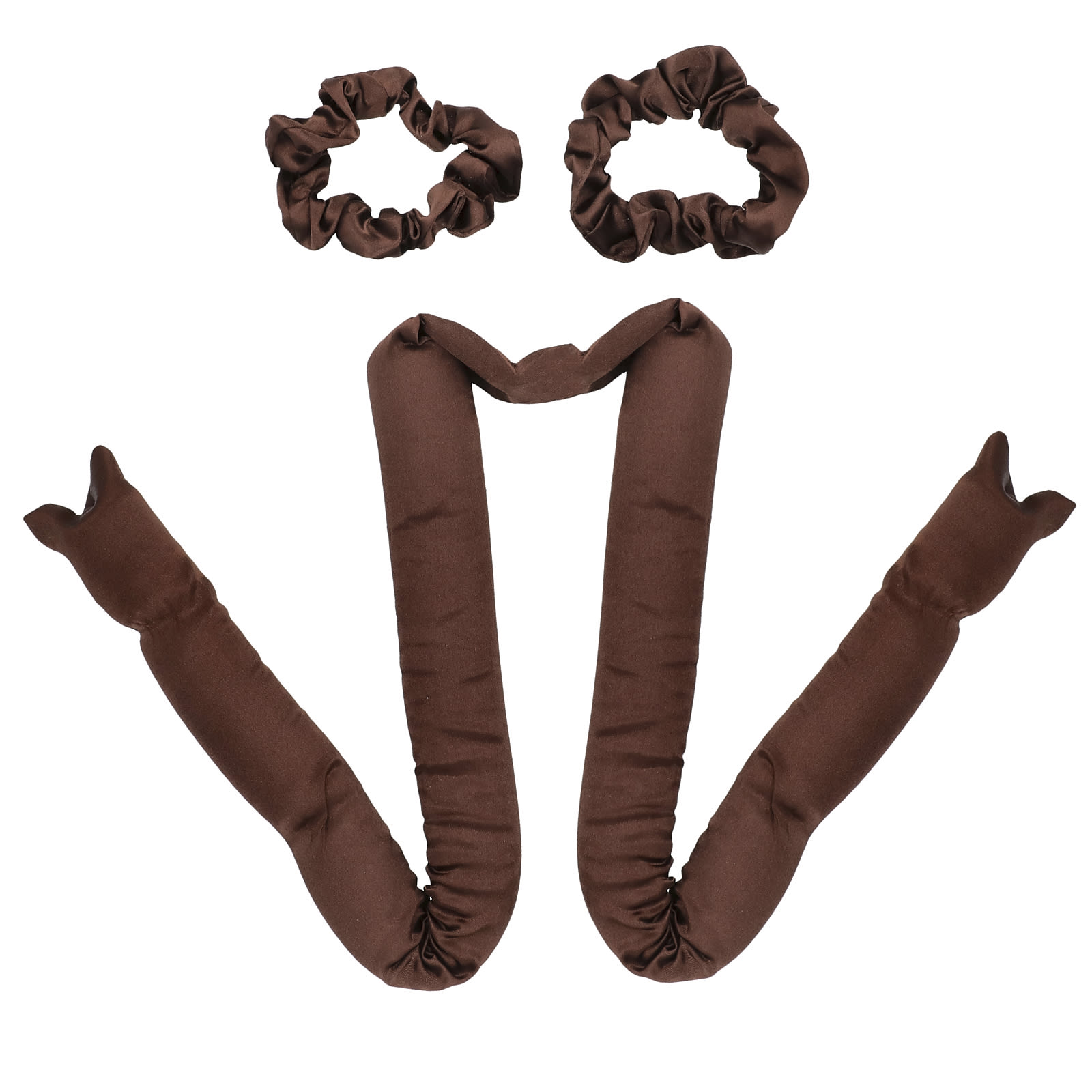 - В комплекте две сатиновые резинки для волос, которые аккуратно фиксируют волосы, не перегибая их и не оставляя вмятин.