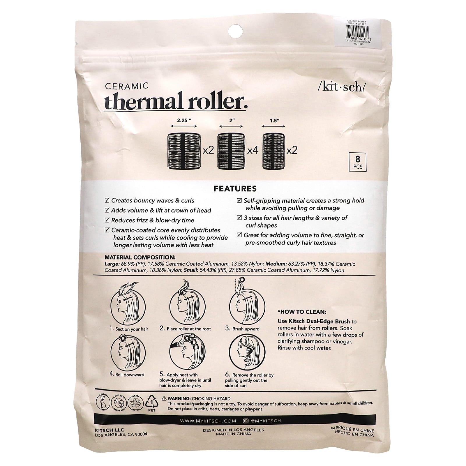 Как очистить: Используйте двустороннюю щетку Kitsch для удаления волос с валиков. Замочите ролики в воде с несколькими каплями очищающего шампуня или уксуса. Смойте прохладной водой.