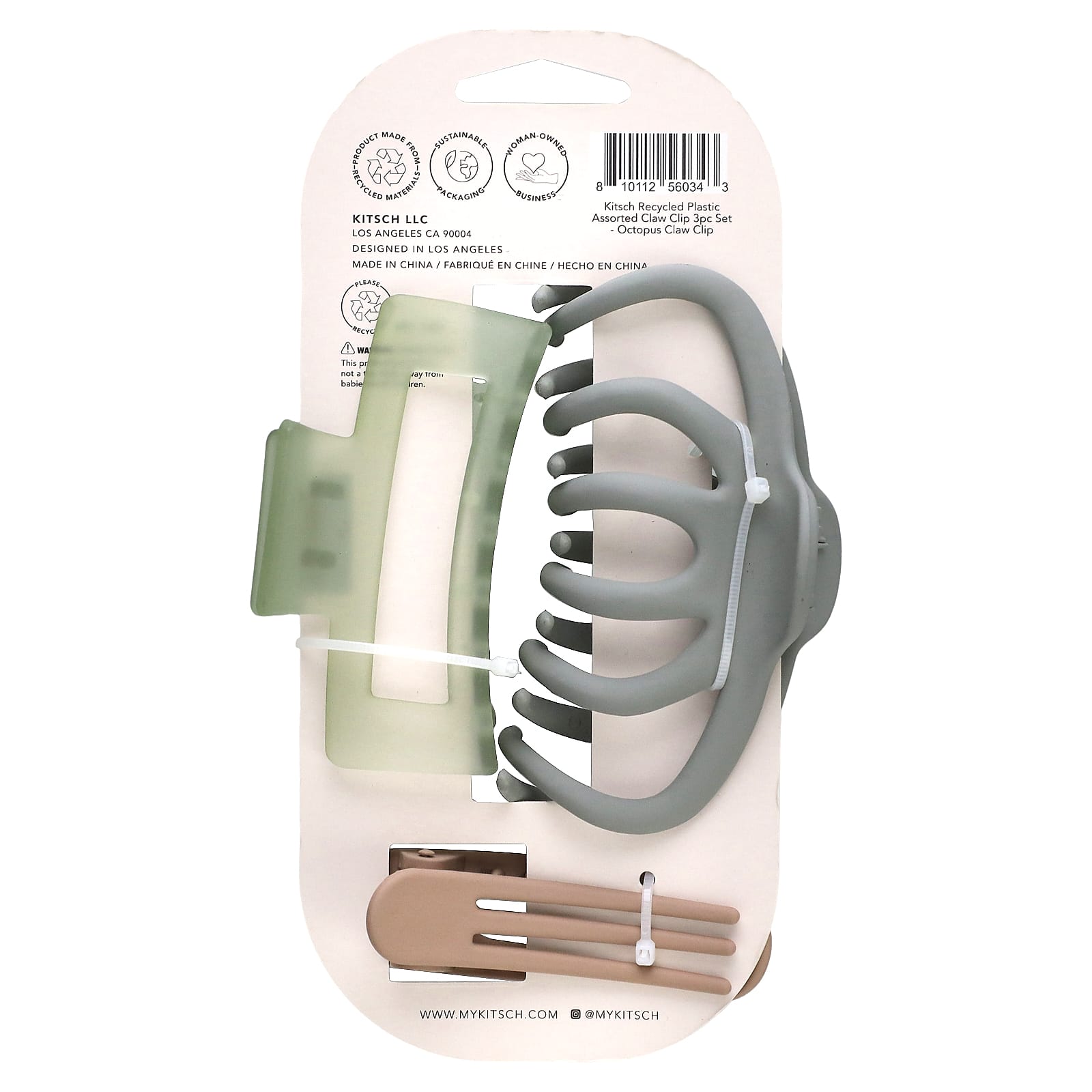 Набор зажимов для волос Kitsch из переработанного пластика содержит три незаменимых зажима для волос самых разных размеров, которые вы можете подстригать и брать с собой в любое удобное для вас время! Что включено: