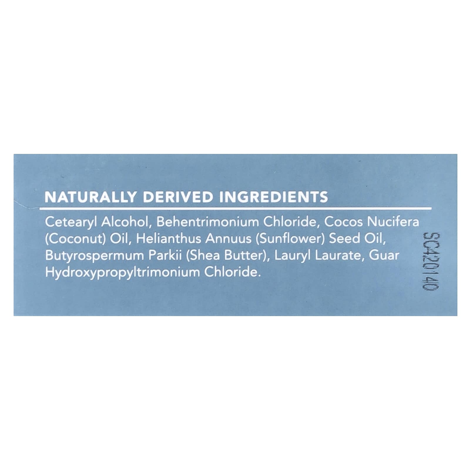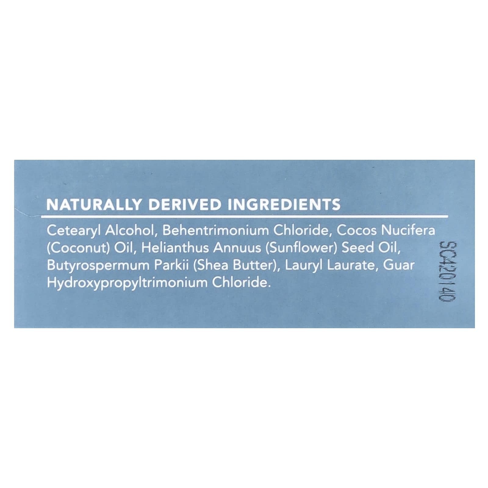 Цетеариловый спирт, бегентримония хлорид, кокосовое масло (Cocos nucifera), подсолнечное масло (Helianthus annuus), масло ши (Butyrospermum parkii), лаурил лаурат, гуар гидроксипропилтримония хлорид.