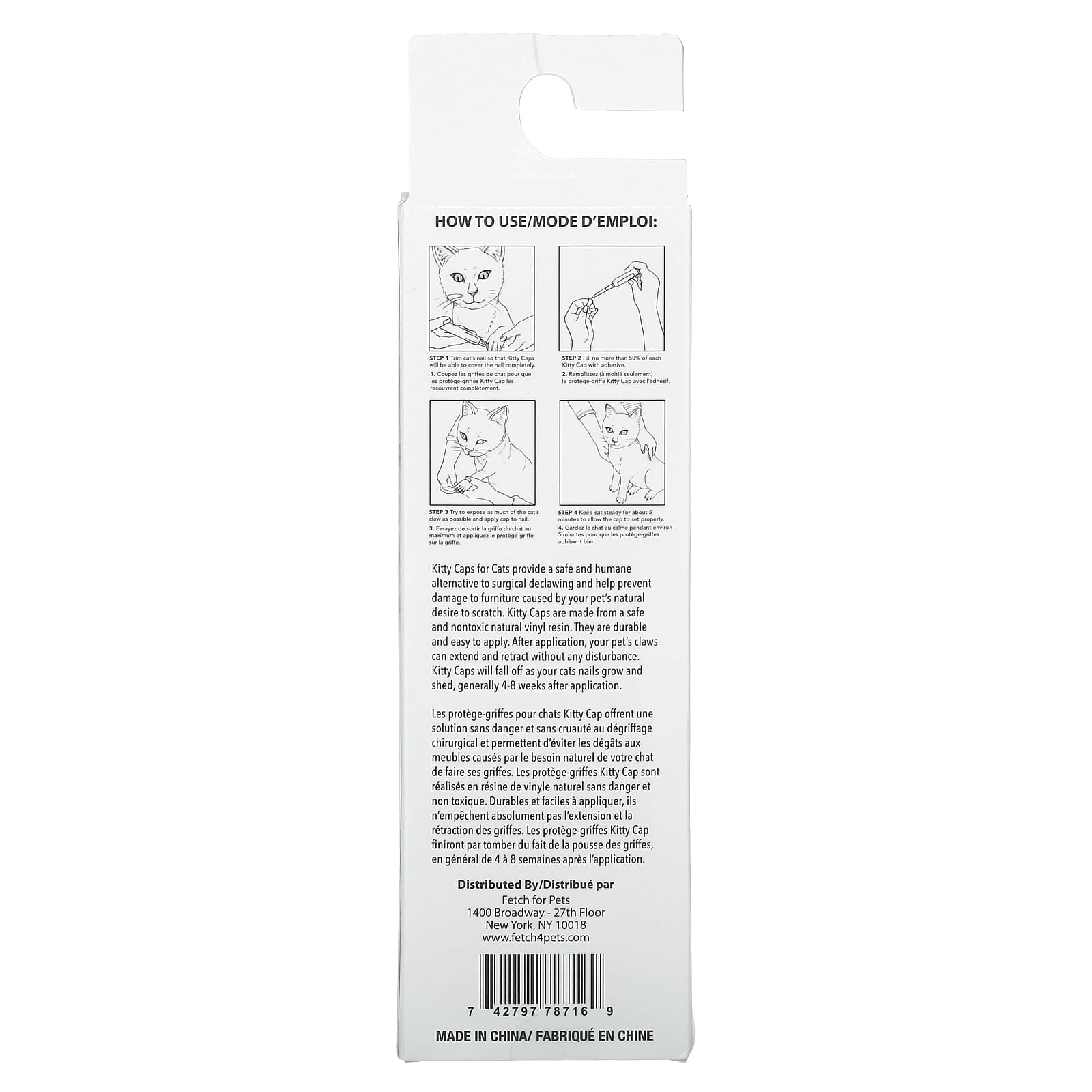 Кепки для кошек являются безопасной и гуманной альтернативой хирургическому удалению когтей и помогают предотвратить повреждение мебели, вызванное естественным желанием вашего питомца почесаться. Kitty Caps изготовлены из безопасной и нетоксичной натуральной виниловой смолы. Они прочные и легко наносятся. После нанесения когти вашего питомца могут выдвигаться и втягиваться без каких-либо проблем. Kitty Caps будет падать по мере роста или выпадения когтей, обычно через 4–8 недель после нанесения.
