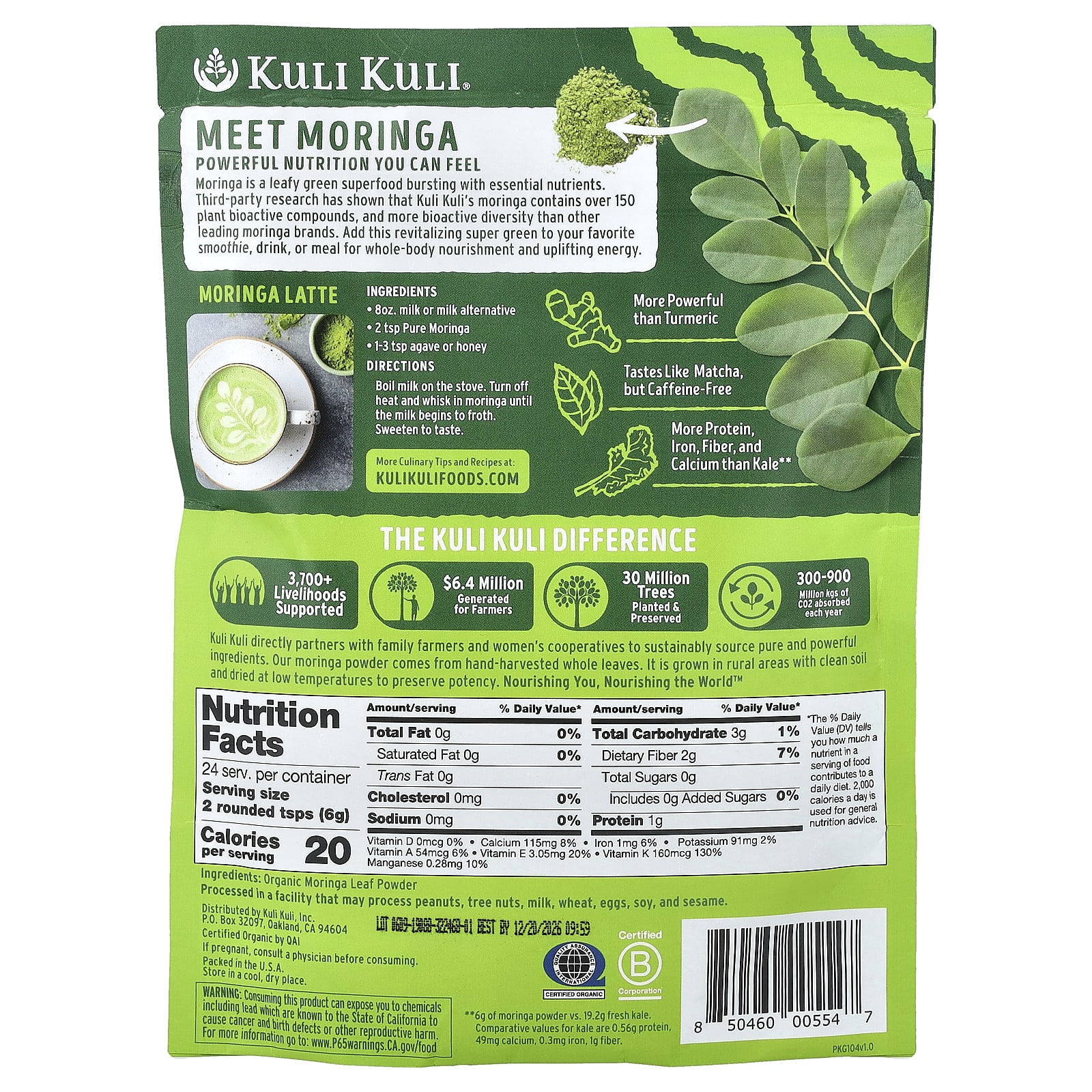 Моринга — это суперфуд в виде зеленых листьев, богатый необходимыми питательными веществами. Независимые исследования показали, что моринга Kuli Kuli содержит более 150 растительных биоактивных соединений и является более биоактивным, чем моринга других ведущих брендов. Добавьте эту восстанавливающую зелень в свой любимый смузи, напиток или еду, чтобы получить питание для всего организма и придать энергии.
