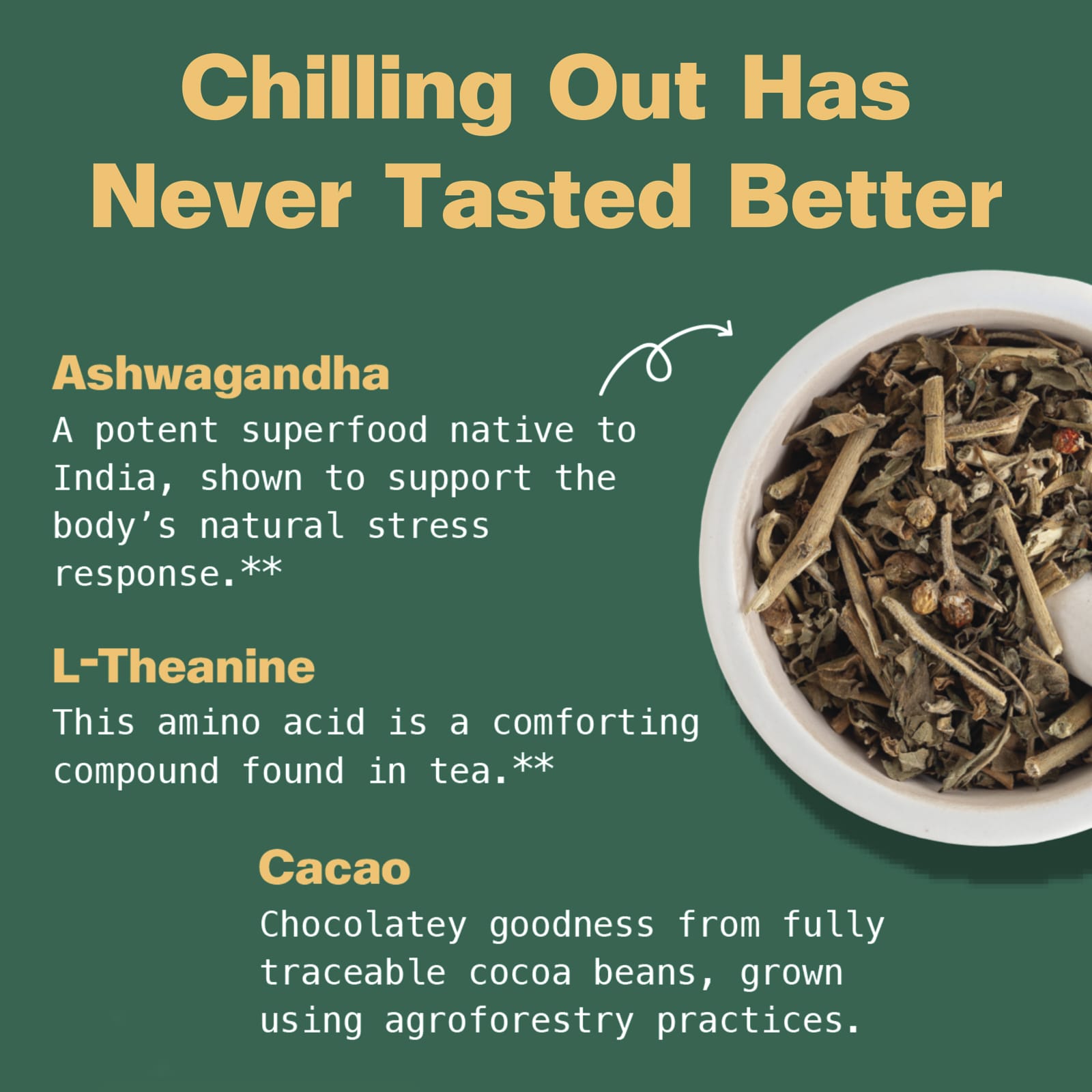 - Ашваганда, L-теанин и какао