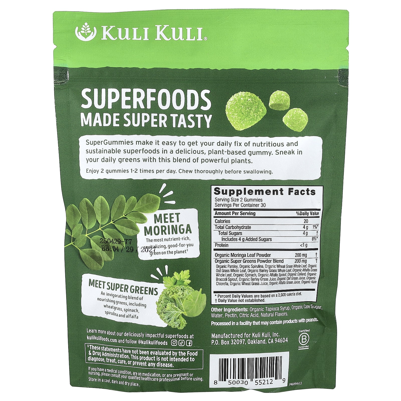 С помощью SuperGummies вы легко получите ежедневную дозу питательных и экологически чистых суперфудов в виде вкусных жевательных таблеток на растительной основе. Добавьте свою ежедневную зелень с этой смесью эффективных растений.