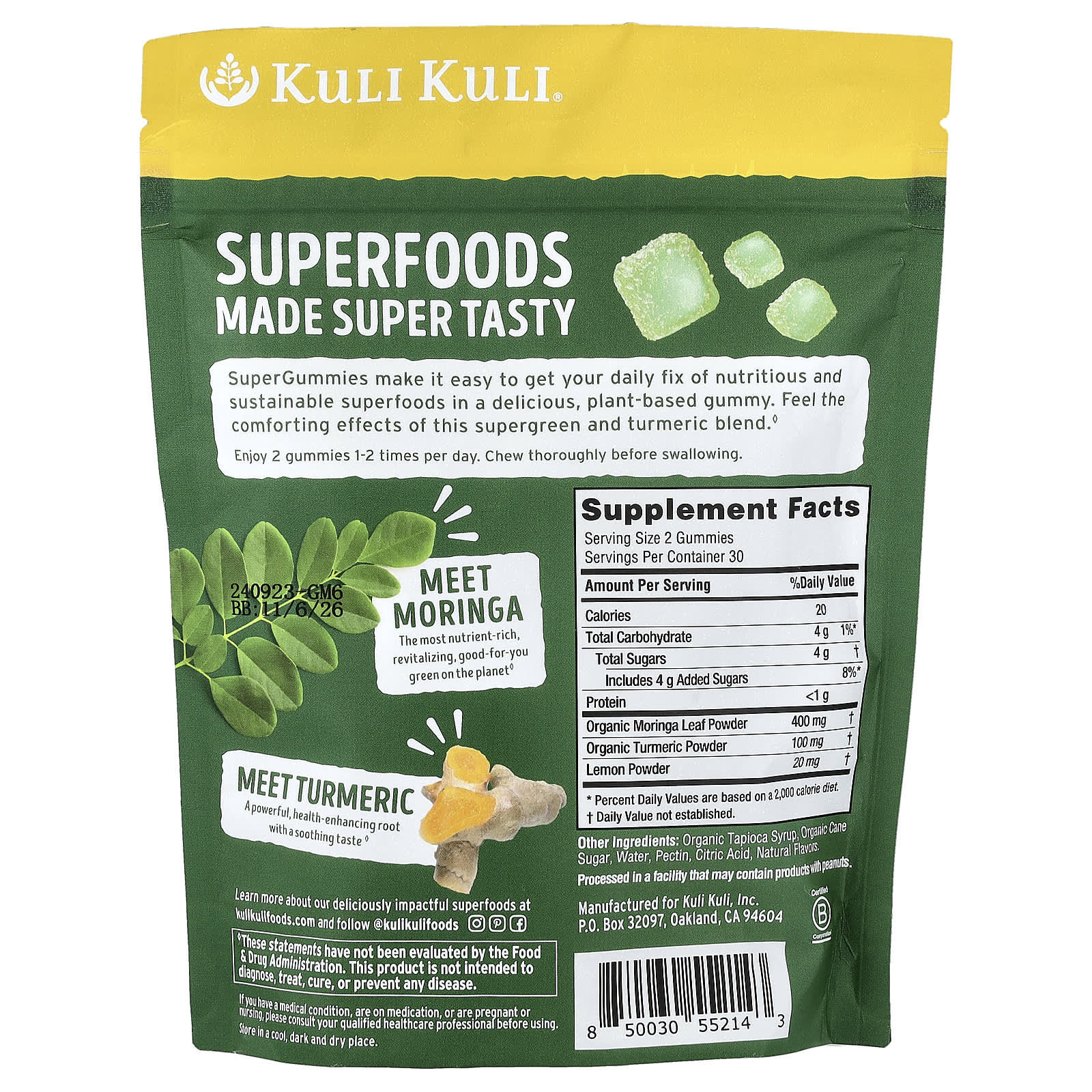 С помощью SuperGummies вы легко получите ежедневную дозу питательных и экологически чистых суперфудов в виде вкусных жевательных таблеток на растительной основе. Почувствуйте успокаивающий эффект этой смеси суперзелени и куркумы.
