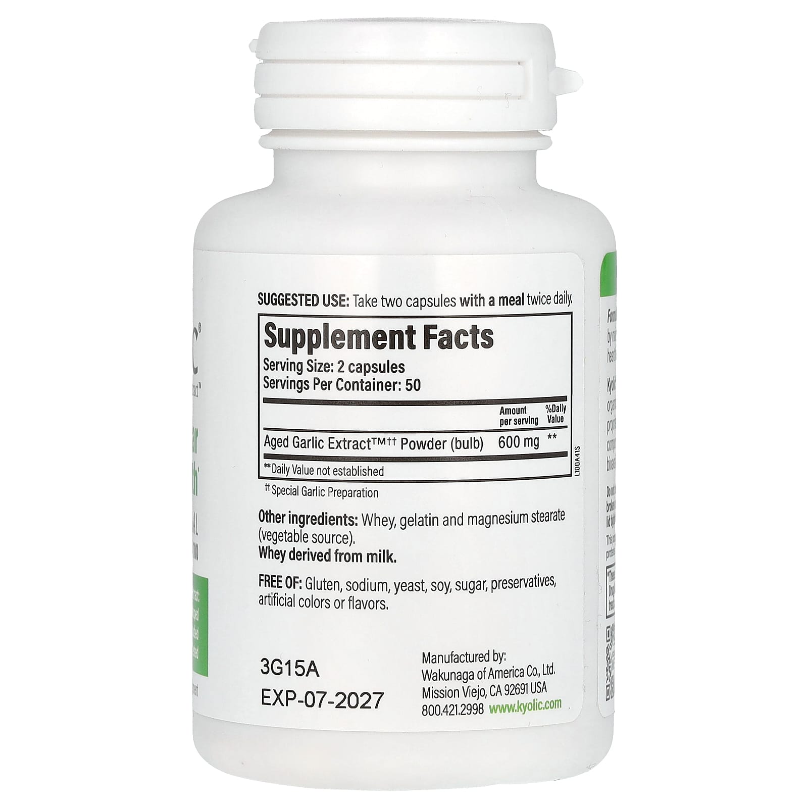 Kyolic, Aged Garlic Extract, выдержанный экстракт чеснока, добавка для здоровья сердечно-сосудистой системы, оригинальный состав Formula 100, 600 мг, 100 капсул (300 мг в 1 капсуле)