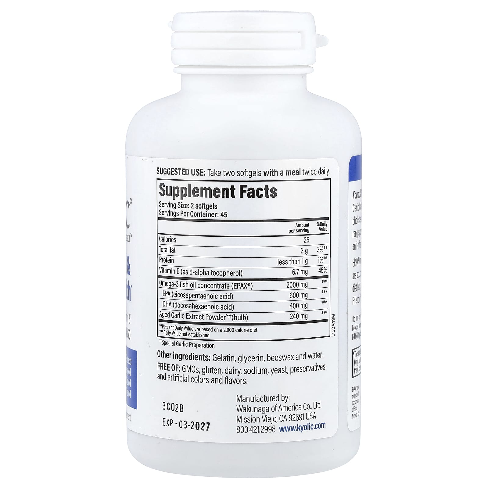 Формула 150 сочетает в себе выдержанный экстракт чеснока Aged Garlic Extract™ от Kyolic® без запаха, омега-3 и витамин E для поддержания уровня холестерина и триглицеридов в пределах нормы, улучшения кровообращения и естественной противовоспалительной реакции организма.
