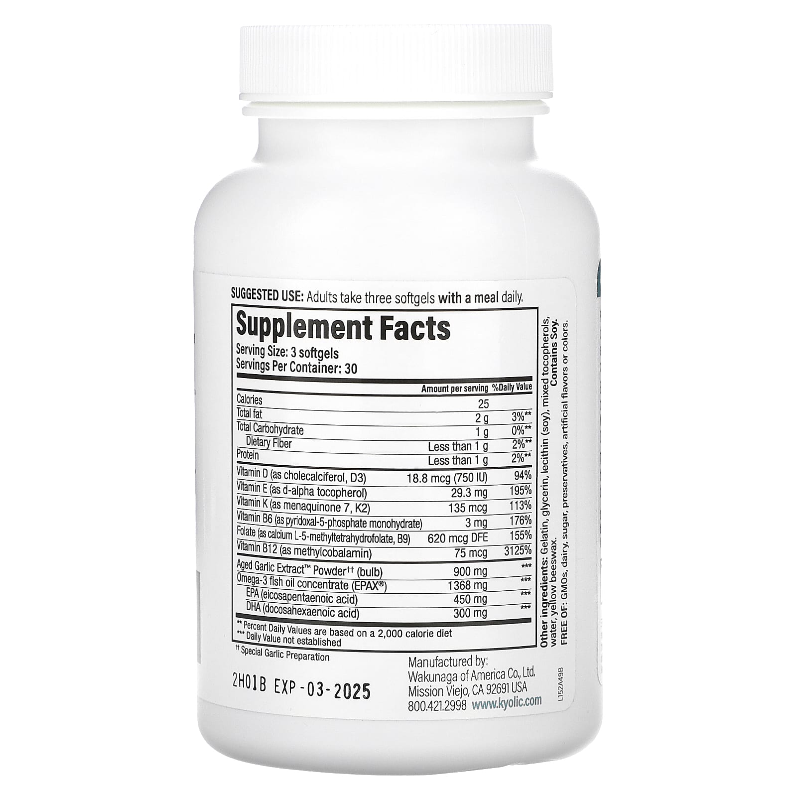 Formula 152 — это уникальная смесь питательных веществ для поддержания хорошего самочувствия. Выдержанный экстракт чеснока Aged Garlic Extract™ от Kyolic® без запаха и омега-3 имеют научно подтвержденные преимущества для здоровья сердечно-сосудистой системы и иммунитета.
