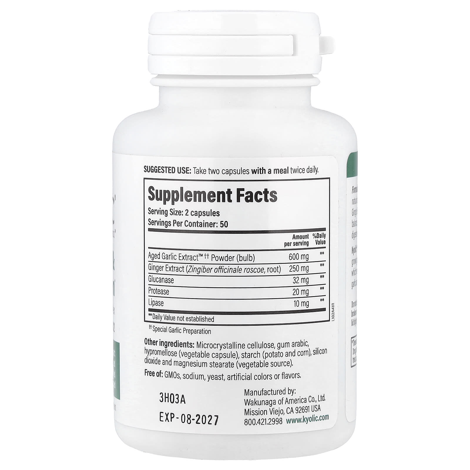 Смесь растений и ферментов формулы 102 содержит уникальную, натуральную синергетическую комбинацию из выдержанного экстракта чеснока Aged Garlic Extract™, имбиря, глюканазы, липазы и протеазы, которые обеспечивают сбалансированное содержание дрожжей, очищение организма изнутри, здоровую работу кишечника, поддержание пищеварительного баланса и усвоение питательных веществ.