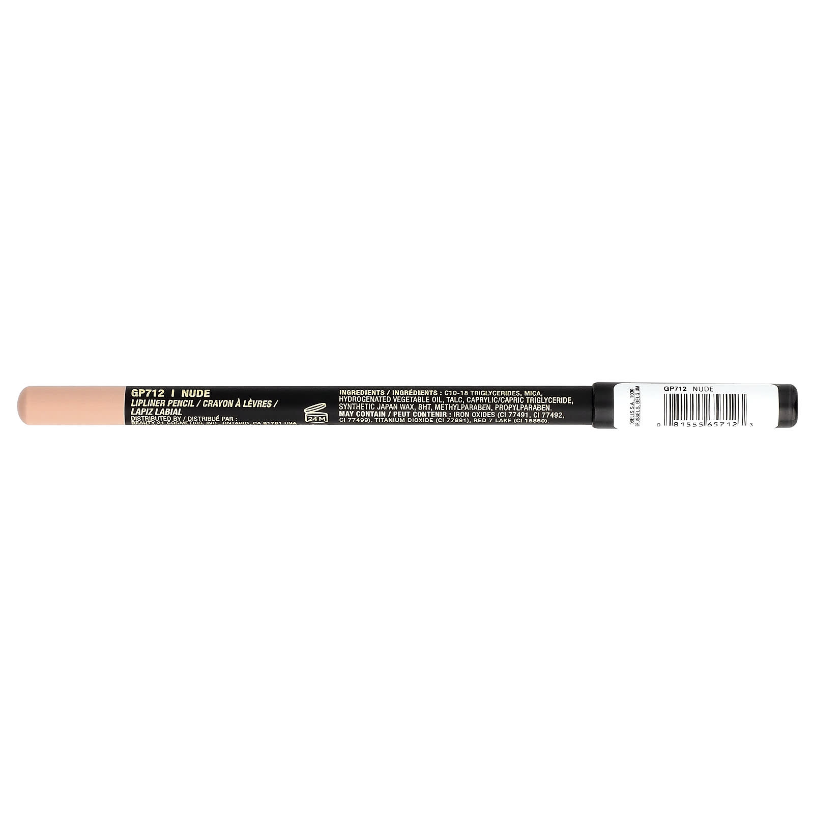C10-18 триглицериды, слюда, гидрогенизированное растительное масло, тальк, каприловый/каприновый триглицерид, синтетический японский воск, бутилгидрокситолуол, метилпарабен, пропилпарабен, может содержать оксиды железа (CI 77491, CI 77492, CI 77499), диоксид титана (CI 77891), краситель красный 7 лак (CI 15850).