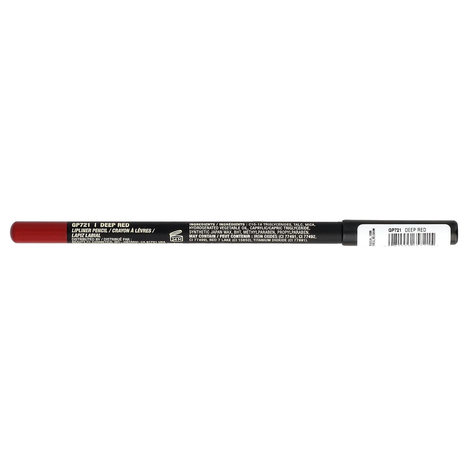 C10-18 триглицериды, тальк, слюда, гидрогенизированное растительное масло, каприловый/каприновый триглицерид, синтетический воск из Японии, бутилгидрокситолуол, метилпарабен, пропилпарабен. Может содержать оксиды железа (CI 77491, CI 77492. CI 77499), краситель красный 7 лак (CI 15850), диоксид титана (CI 77891).