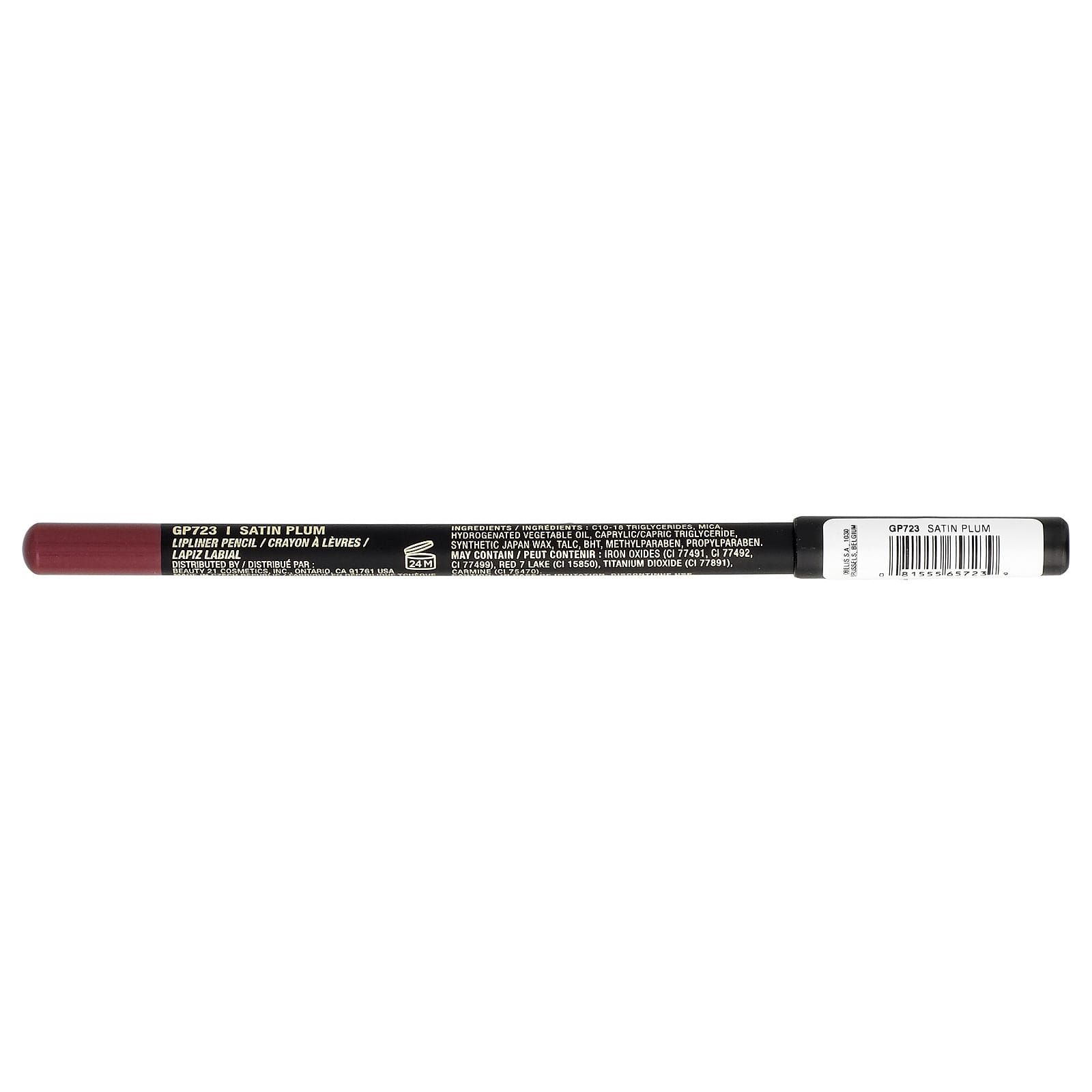C10-18 триглицериды, слюда, гидрогенизированное растительное масло, каприловый/каприновый триглицерид, синтетический воск из Японии, тальк, бутилгидрокситолуол, метилпарабен, пропилпарабен. Может содержать оксиды железа (CI 77491, CI 77492, CI 77499), краситель красный 7 лак (CI 15850), диоксид титана (CI 77891), кармин (CI 75470).