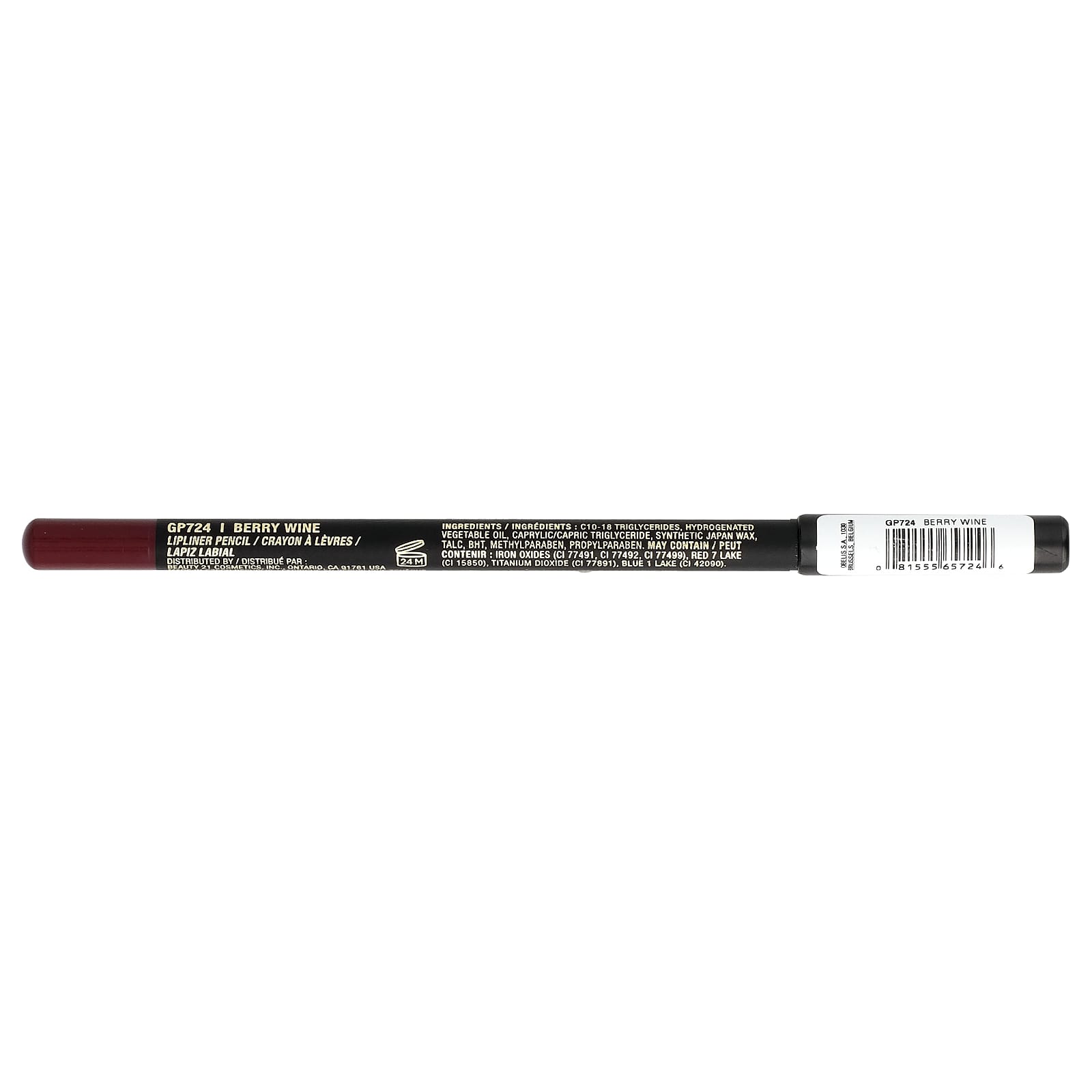 C10-18 триглицериды, гидрогенизированное растительное масло, каприловый/каприновый триглицерид, синтетический японский воск, тальк, бутилгидрокситолуол, метилпарабен, пропилпарабен. может содержать оксиды железа (CI 77491, CI 77492, CI 77499), краситель красный 7 лак (CI 15850), диоксид титана (CI 77891), краситель синий 1 лак (CI 42090).