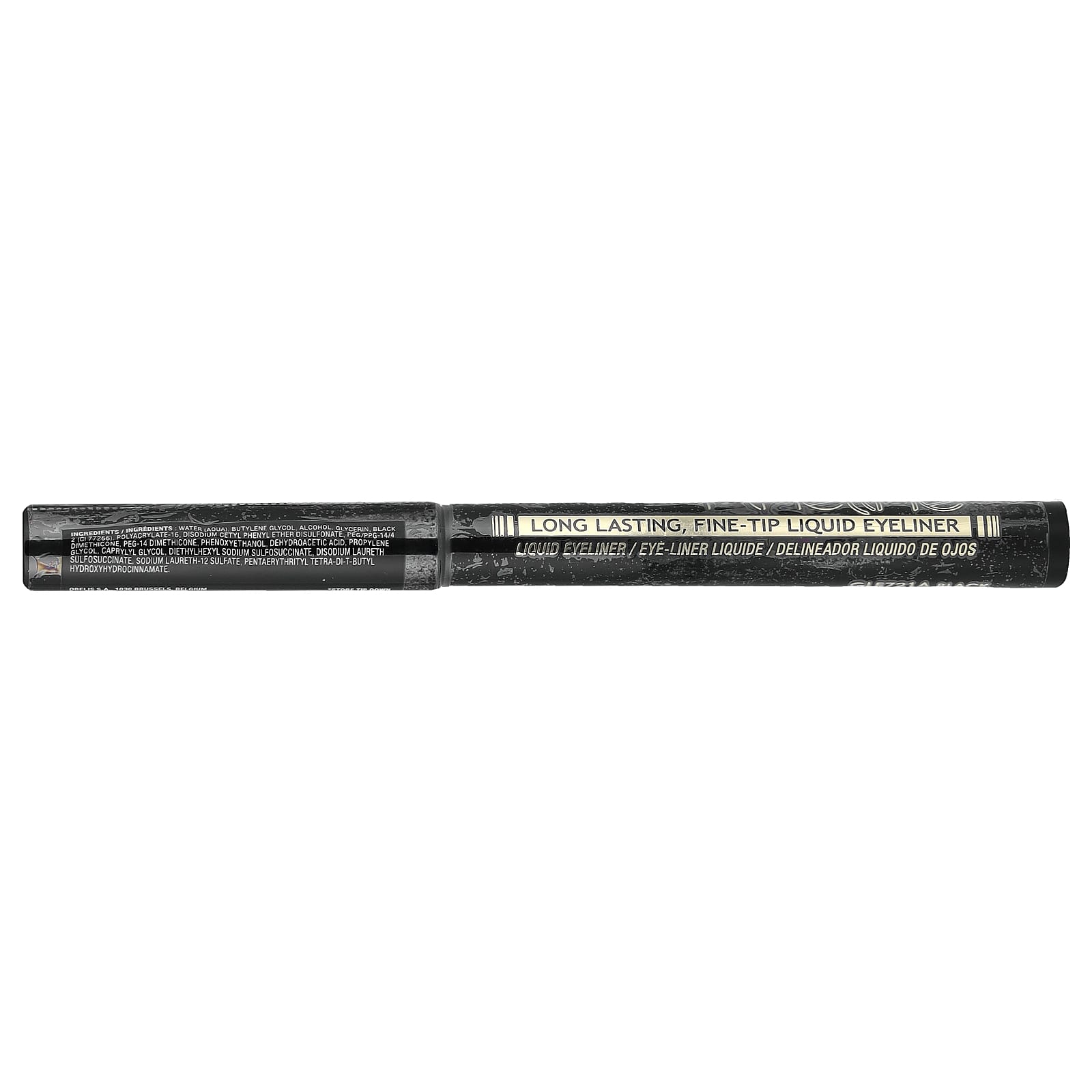 Вода (Aqua), бутиленгликоль, спирт, глицерин, краситель черный 2 (CI 77266), полиакрилат-16, динатрия цетилфениловый эфир, дисульфонат, ПЭГ/ППГ-14/4 диметикон, ПЭГ-14 диметикон, феноксиэтанол, дегидроуксусная кислота, пропиленгликоль, каприлилгликоль, диэтилгексил сульфосукцинат натрия, динатрия лаурет сульфосукцинат, натрия лаурет-12 сульфат, пентаэритритил тетра-ди-трет-бутил гидроксигидроциннамат