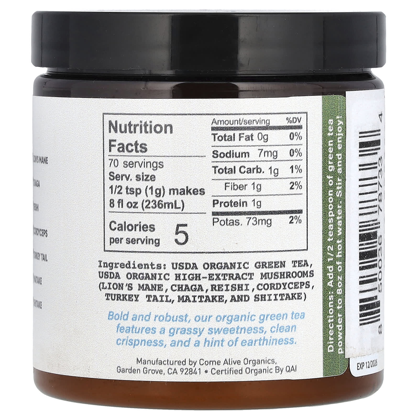 Зеленый чай — сертификат USDA Organic, органические высокоэкстрактные грибы USDA (ежовик гребенчатый, чага, рейши, кордицепс, трутовик разноцветный, гриб-баран, шиитаке).