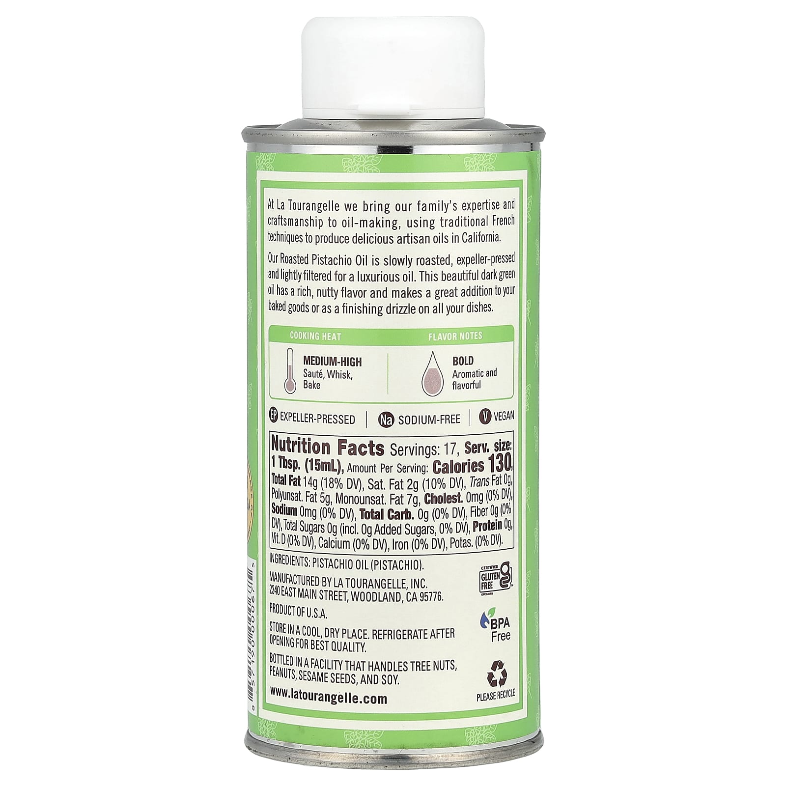 Наше масло из обжаренных фисташек медленно обжаривается, прессуется и проходит лёгкую фильтрацию для получения роскошного вкуса. Это красивое тёмно-зелёное масло имеет насыщенный ореховый вкус и станет отличным дополнением к вашей выпечке или изысканным завершающим аккордом для любых блюд.
