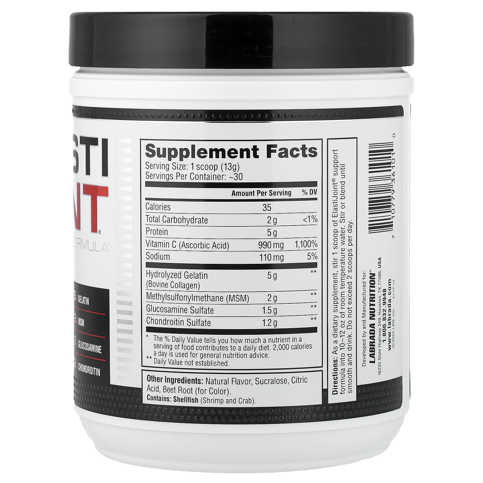 В качестве пищевой добавки размешайте 1 мерную ложку поддерживающей формулы ElastiJoint в 10-12 унциях воды комнатной температуры. Перемешайте вручную или с помощью блендера до получения однородной массы и выпейте. Не принимать больше 2 мерных ложек в день.