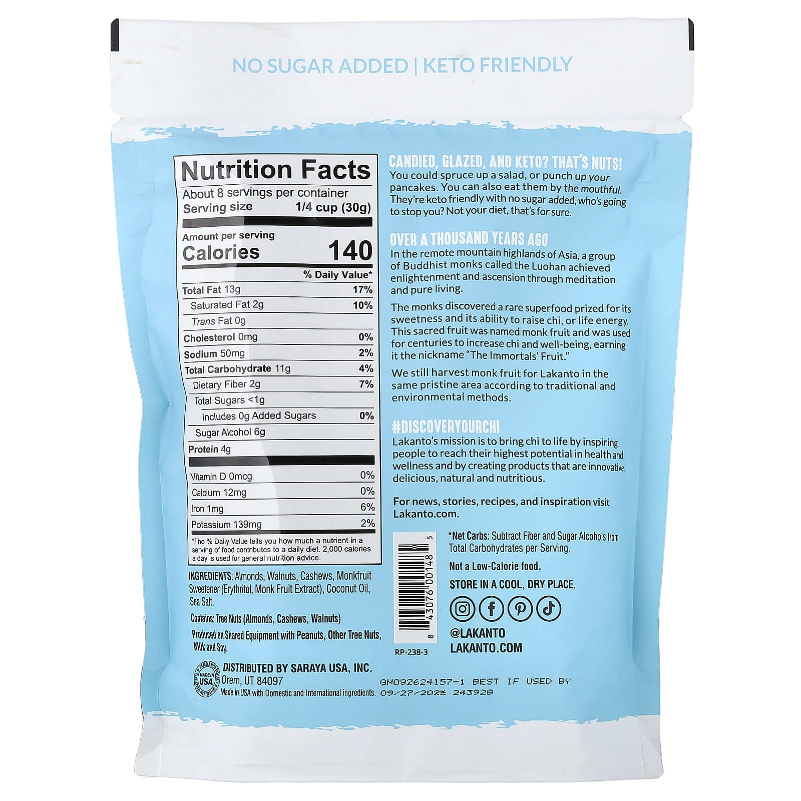 Миссия Lakanto — оживить энергию ци, вдохновляя людей на достижение максимального потенциала в области здоровья и хорошего самочувствия, а также создавая инновационные, вкусные, натуральные и питательные продукты.