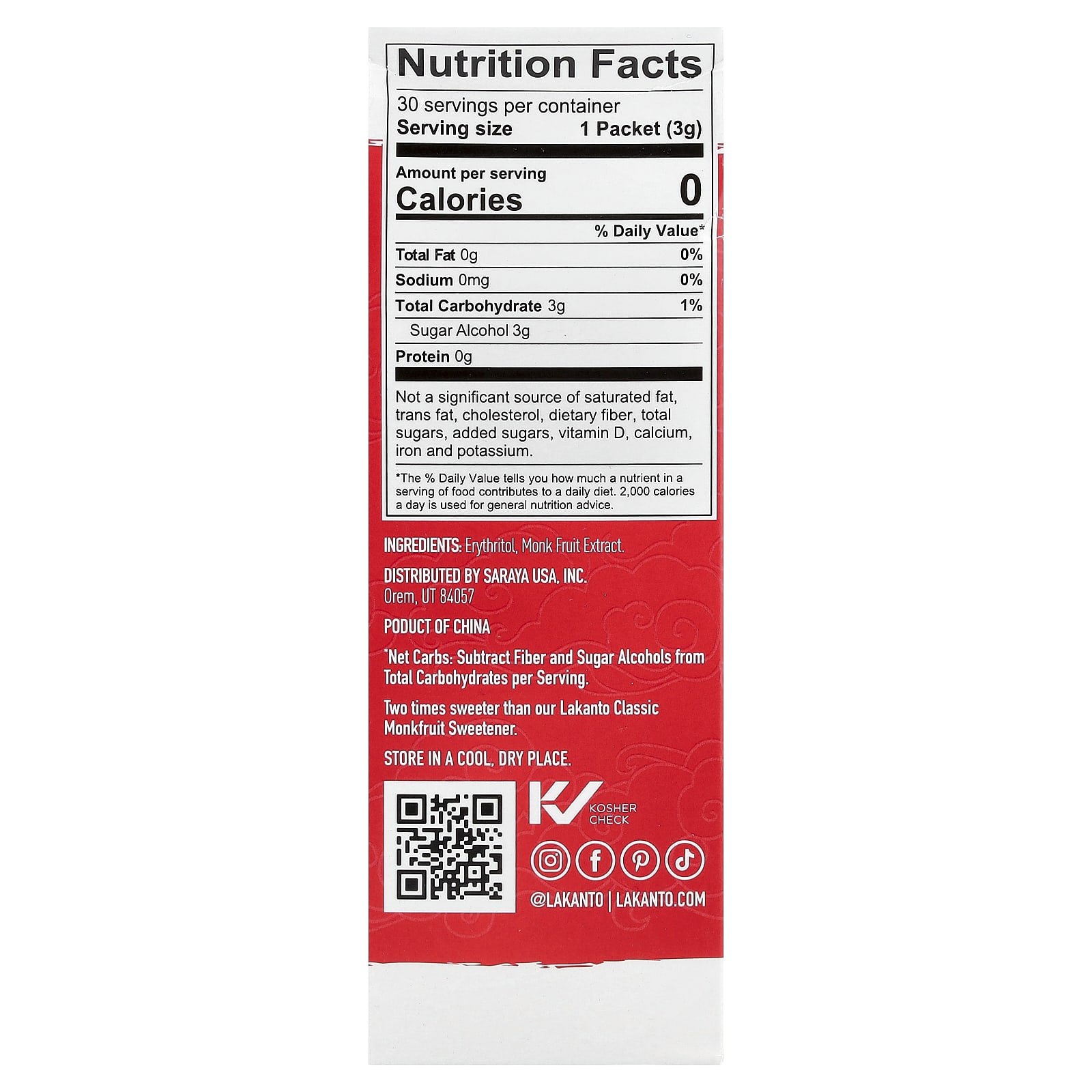 Lakanto, подсластитель из архата с эритритолом, классический, 30 пакетиков, 90 г (3,17 унции)