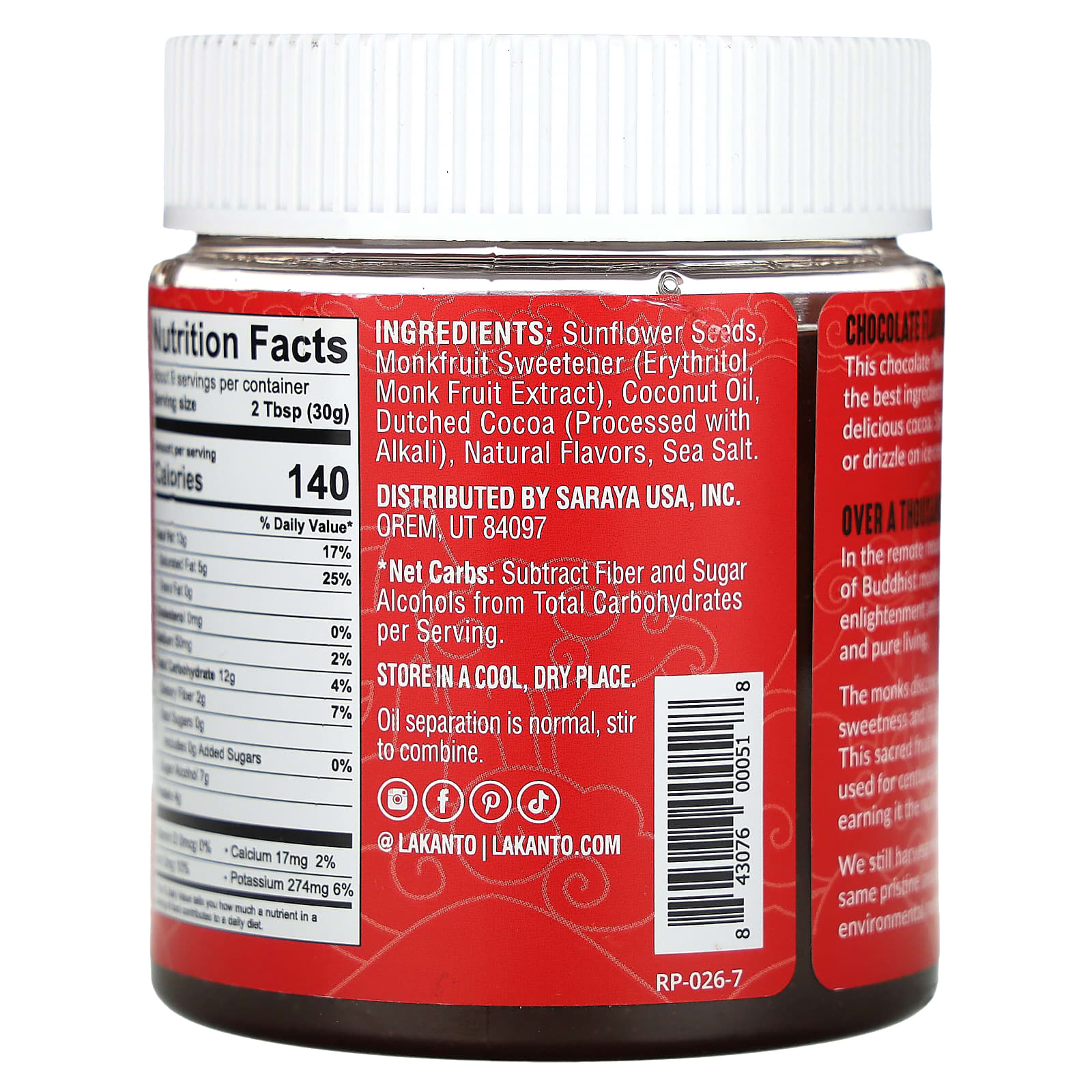 Lakanto, подсолнечная паста с архатом, шоколад, 283 г (10 унций)