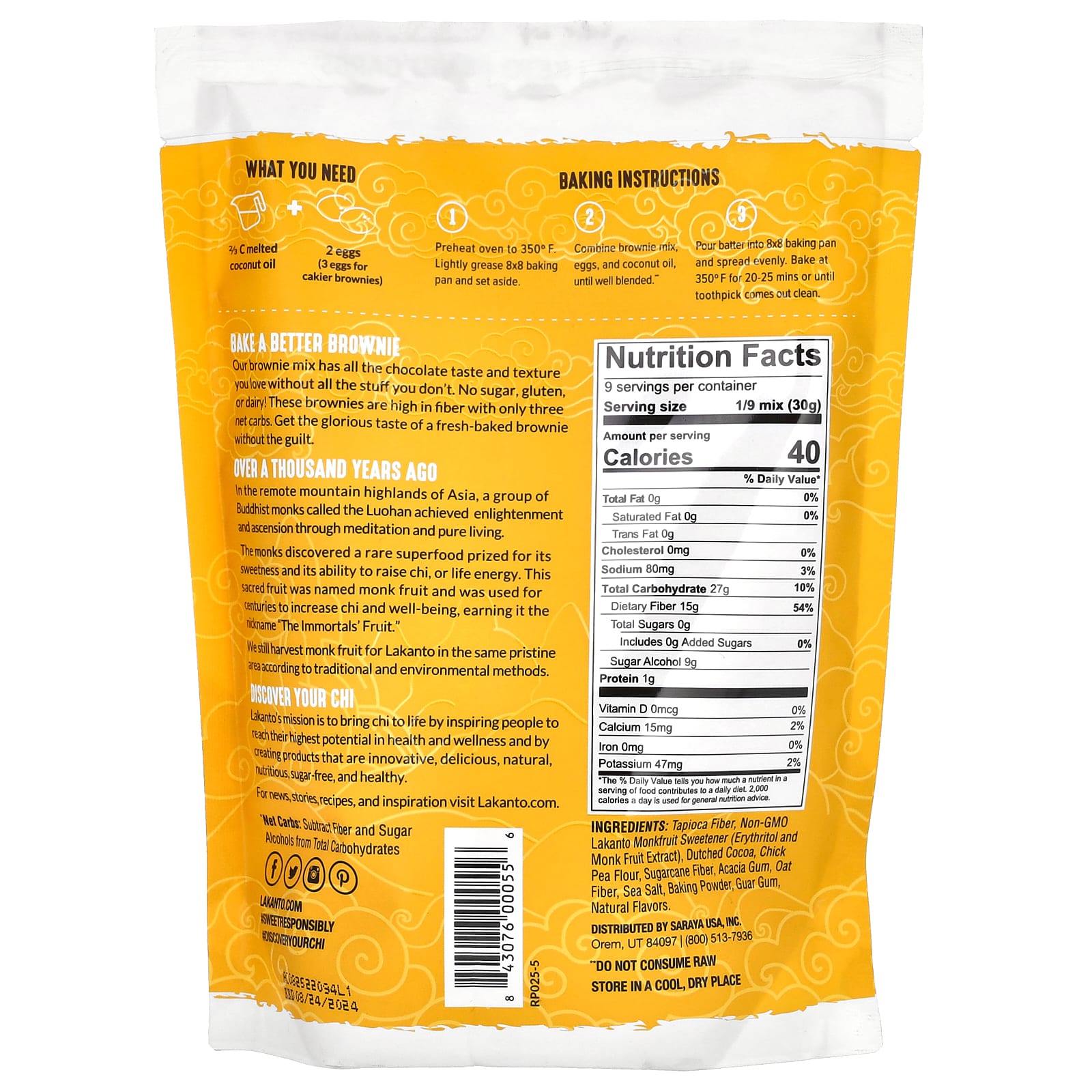 Тапиоковая клетчатка, подслащенный лаканто из плодов монаха без ГМО (эритритол и экстракт плодов монаха), обработанное щелочью какао, мука из нута, клетчатка из сахарного тростника, аравийская камедь, овсяная клетчатка, морская соль, разрыхлитель, гуаровая камедь, натуральные ароматизаторы.