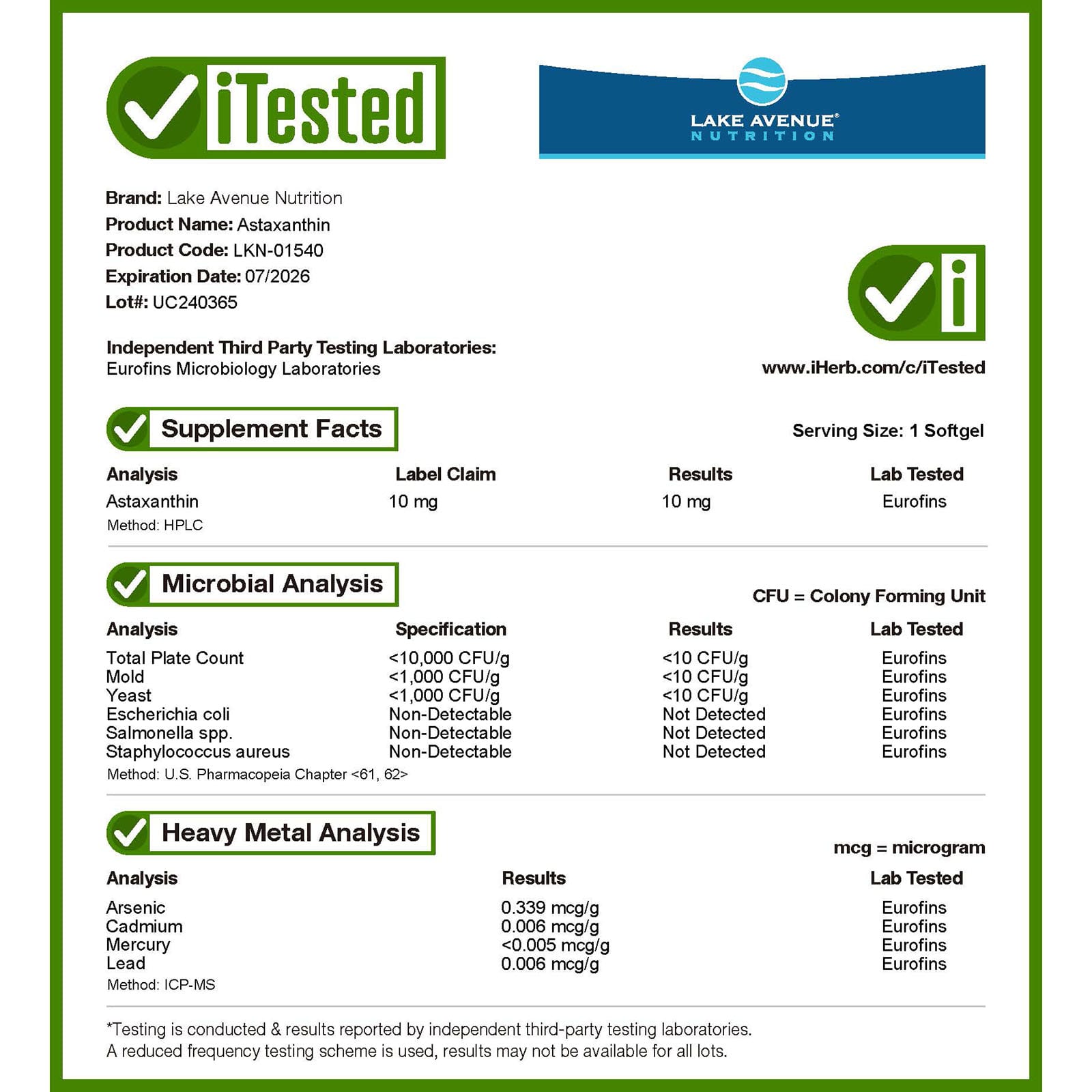 Астаксантин от Lake Avenue Nutrition содержит астаксантин, полученный из экстракта микроводорослей гематококк (Haematococcus pluvialis). Он подходит для вегетарианцев, не содержит глютена и ГМО. Одна упаковка рассчитана на прием в течение четырех месяцев (при соблюдении рекомендаций).