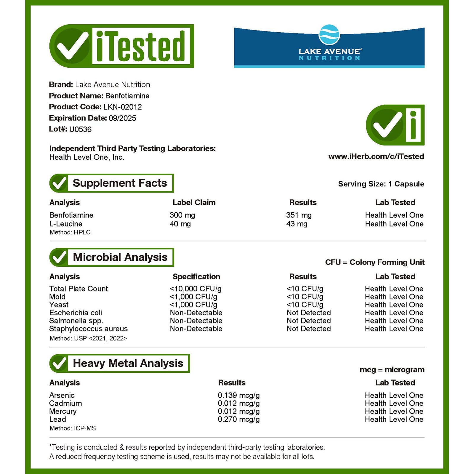 Бенфотиамин от Lake Avenue Nutrition® содержит жирорастворимую форму витамина B1, важного питательного вещества, которое помогает организму выполнять различные функции. Поскольку бенфотиамин жирорастворимый, он может храниться и использоваться организмом позже, помогая улучшить его биодоступность.