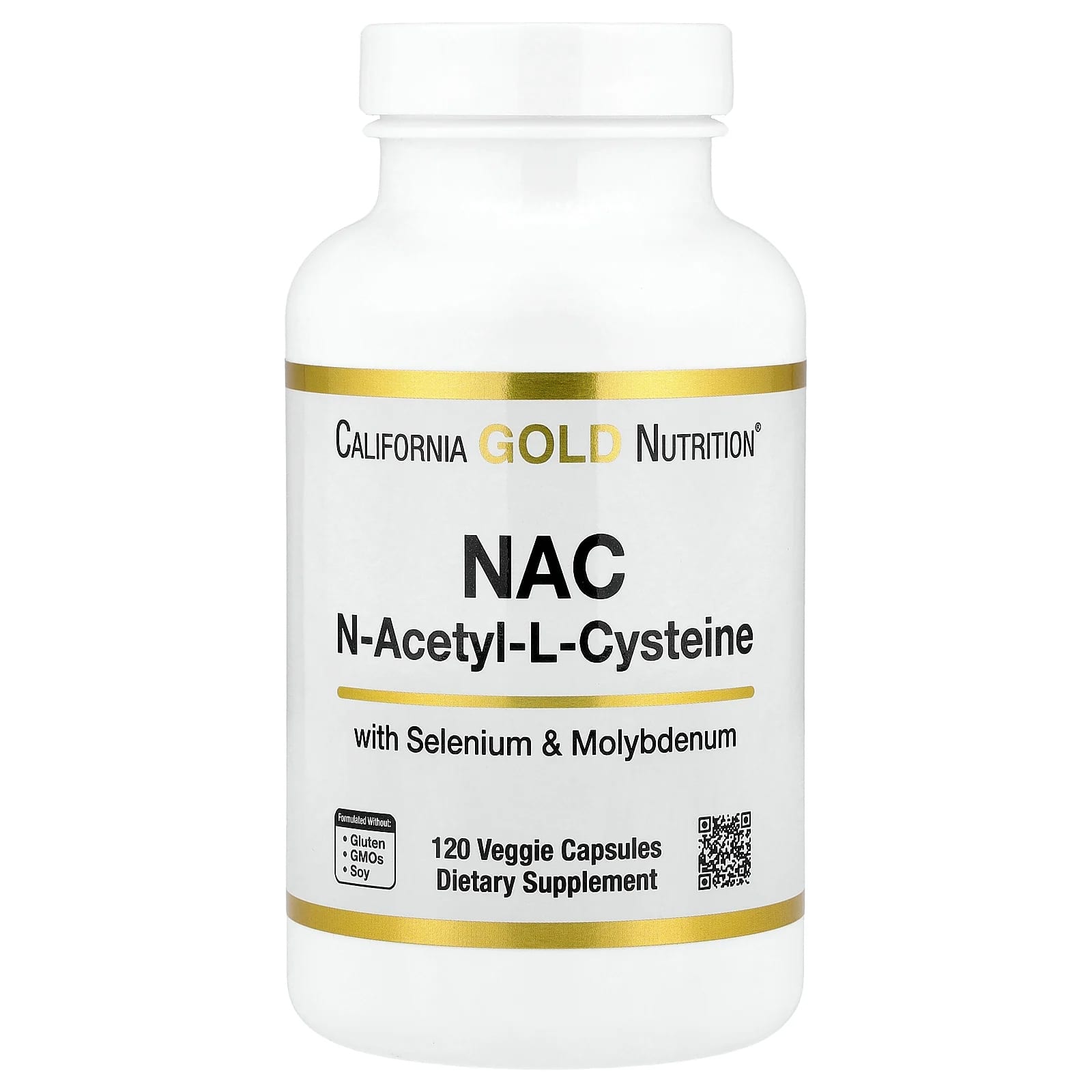 NAC (N-ацетил-L-цистеин) от California Gold Nutrition® содержит аминокислоту N-ацетил-L-цистеин, селен и молибден для поддержания здоровья клеток*.