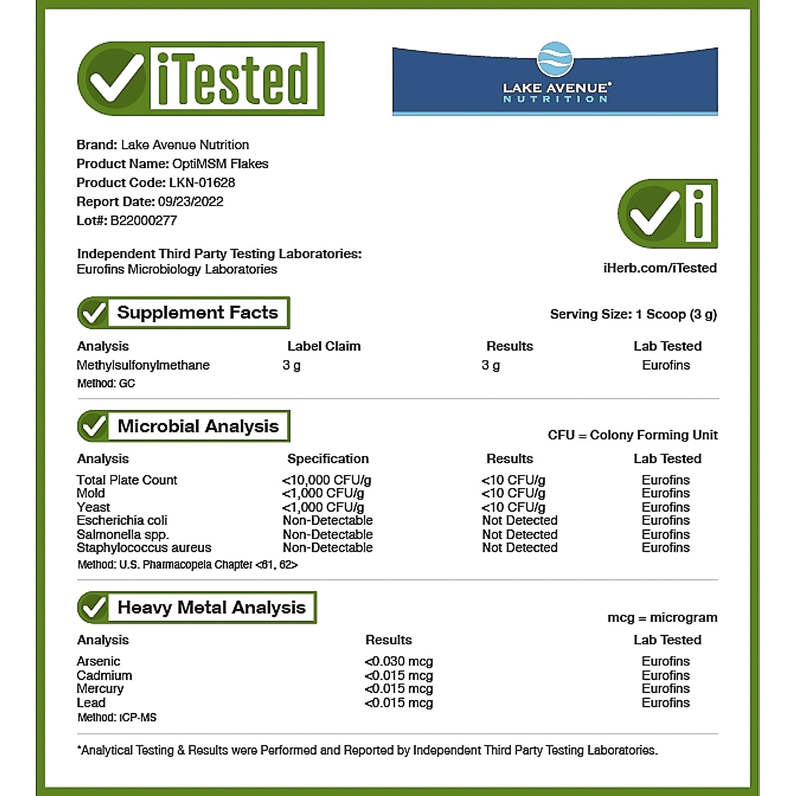 Метилсульфонилметан OptiMSM® от Lake Avenue Nutrition содержит метилсульфонилметан в виде удобной добавки, которую можно легко добавить в свой рацион. Просто добавьте хлопья в напиток по вашему выбору, чтобы получить дополнительный заряд этого питательного вещества!