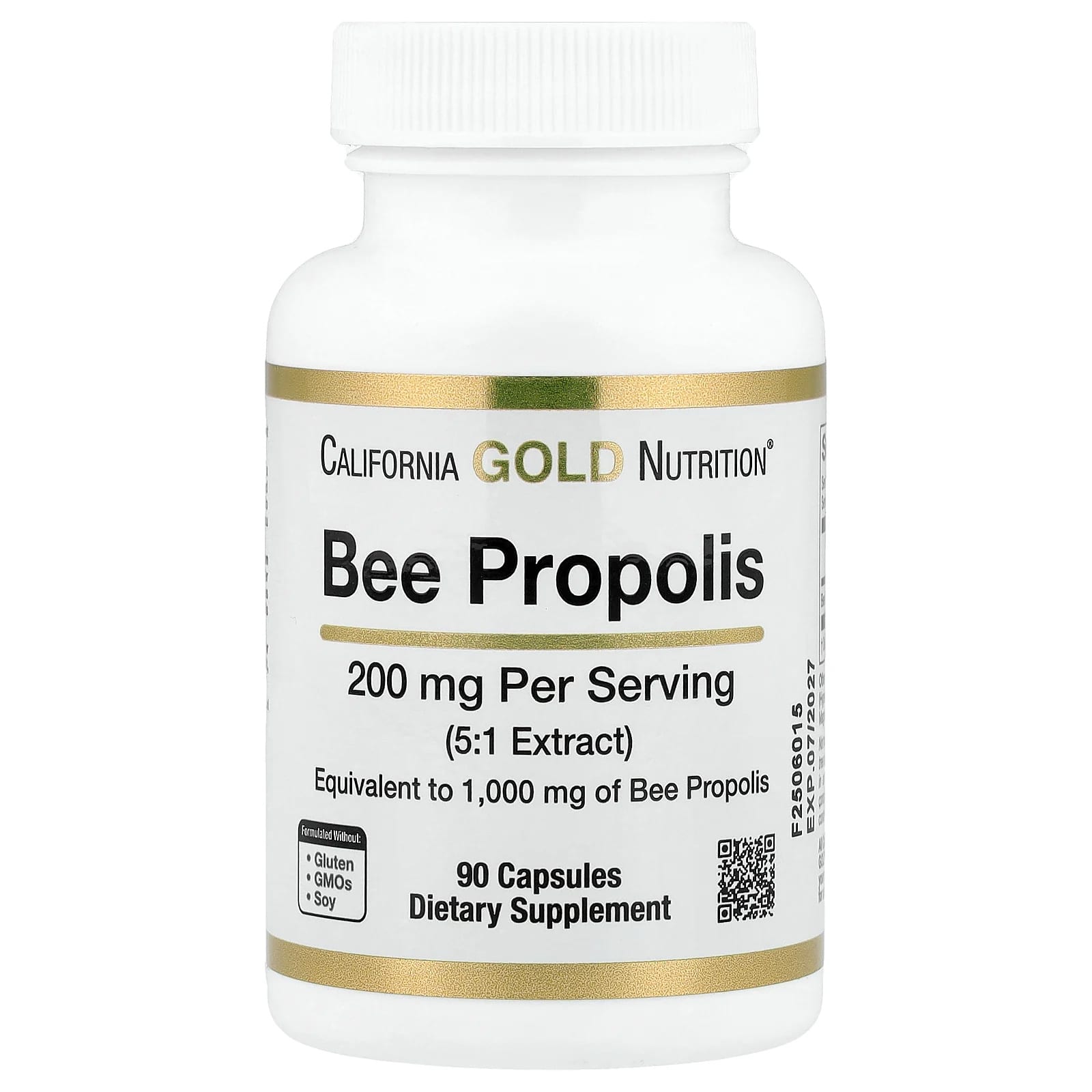 Пчелиный прополис от California Gold Nutrition® содержит экстракт пчелиного прополиса в соотношении 5:1, что эквивалентно 1000 мг пчелиного прополиса. Одна упаковка рассчитана на приём в течение примерно 3 месяцев (при соблюдении рекомендованной дозы).