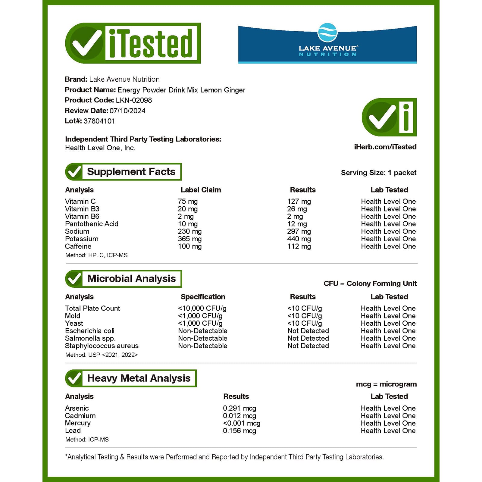 Порошковая смесь для приготовления напитка, повышающего уровень энергии, от Lake Avenue® Nutrition может дать вам заряд энергии благодаря натуральному вкусу, содержанию кофеина и необходимых витаминов и минералов*. Она содержит натуральный кофеин из экстракта зеленых кофейных зерен и экстракта листьев зеленого чая. Она также содержит насыщающие энергией витамины и минералы, в том числе витамины B6, B12 и C, а также важный минерал калий, который помогает бороться с усталостью*.