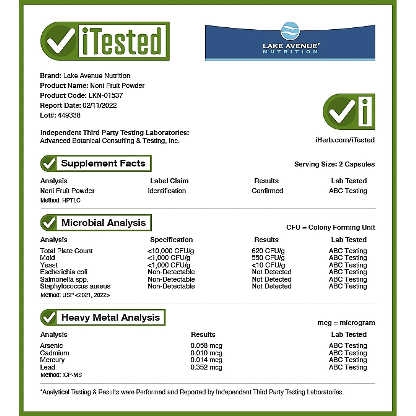 - Порошок из плодов нони от Lake Avenue Nutrition