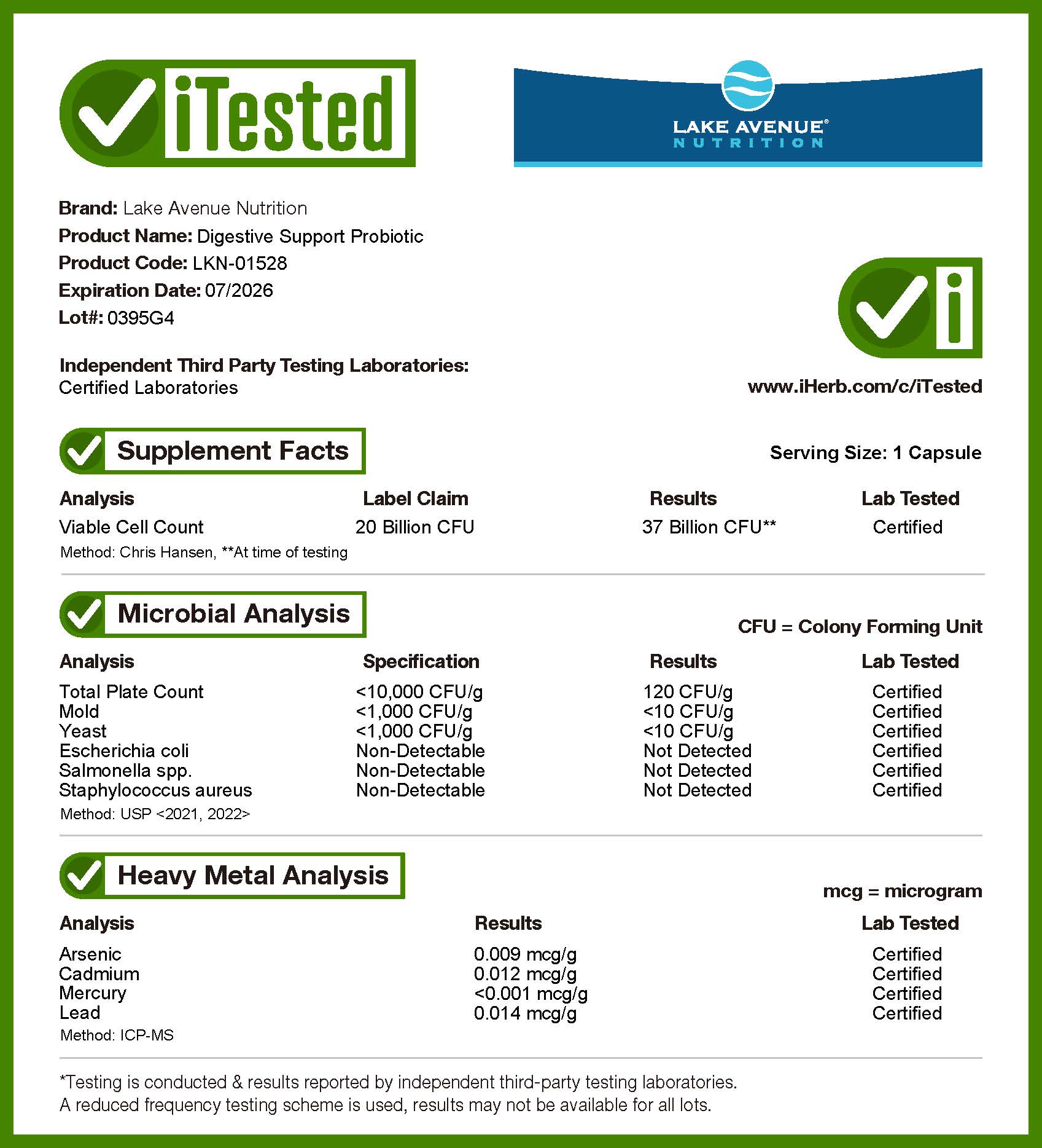 - Продукты брендов iHerb проходят проверку в независимых лабораториях на соответствие качеству и данным, заявленным на этикетке.