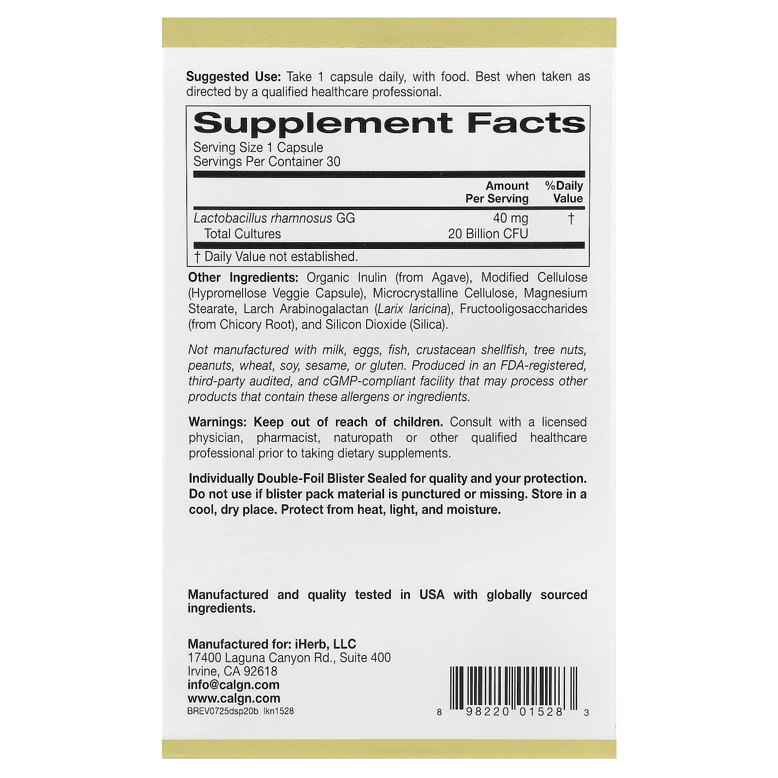 Товары, продаваемые на iHerb, поставляются напрямую от производителей в США и хранятся на наших складах, имеющих регистрацию надлежащей производственной практики (GMP), что сохраняет их высокое качество перед отправкой нашим клиентам. Мы не поставляем продукцию от неавторизованных сторонних продавцов и не допускаем ее появления на сайте или в приложении iHerb. - В продаже начиная с: 12.2019