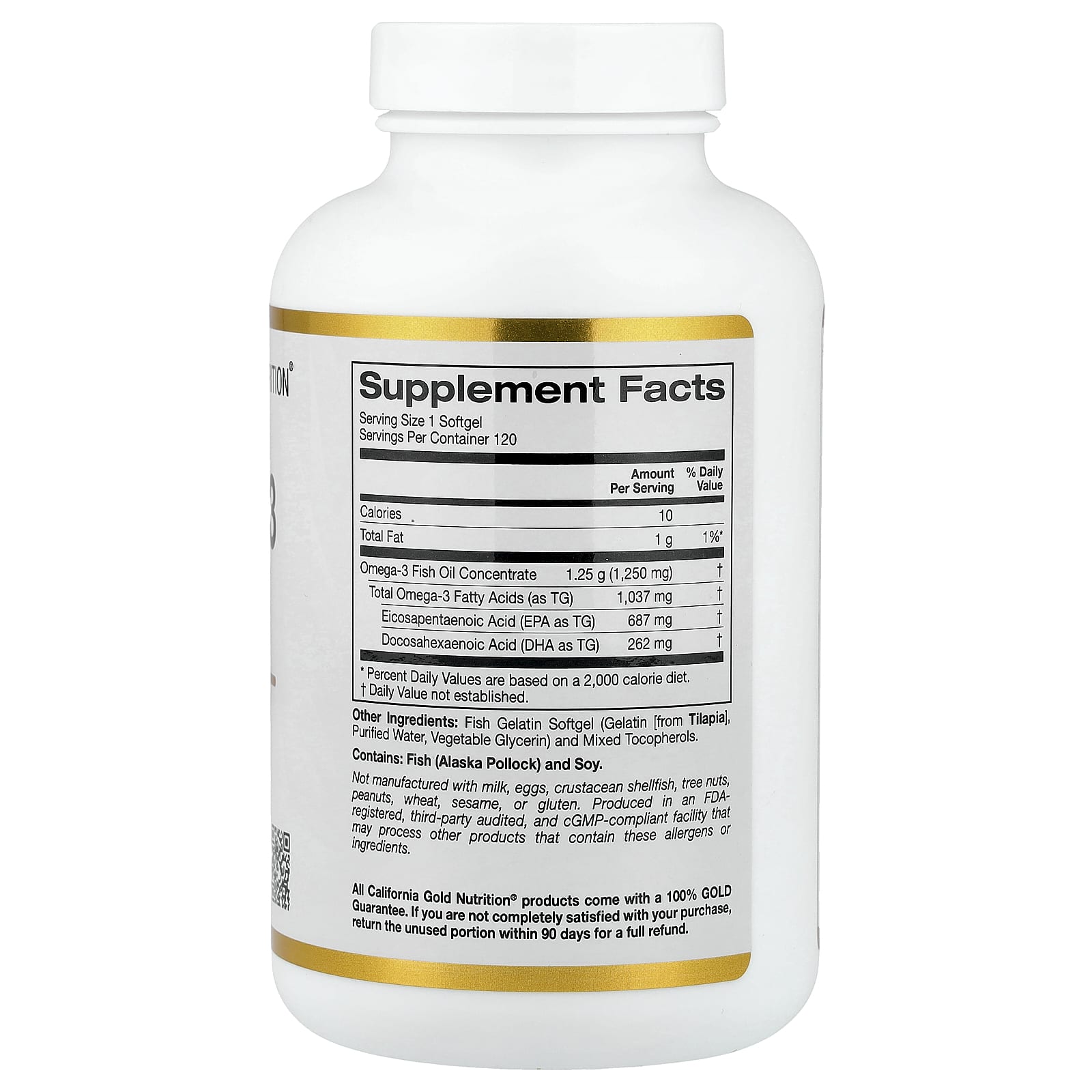 California Gold Nutrition®Рыбий жир с омега-3 содержит две жирные кислоты омега-3, ЭПК и ДГК, которые являются полиненасыщенными жирами, также известными как полезные жиры. Важно включать в свой рацион достаточное количество полезных жиров, так как они могут поддерживать здоровье сердечно-сосудистой системы*. Эти полезные жиры естественным образом содержатся во многих видах морепродуктов, а добавка с рыбьим жиром делает их удобными для получения рекомендуемой дозы.