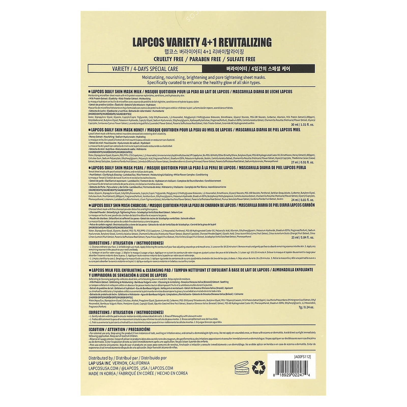 - Lapcos, ежедневная маска для кожи с жемчугом, 24 мл (0,81 жидк. унц.)