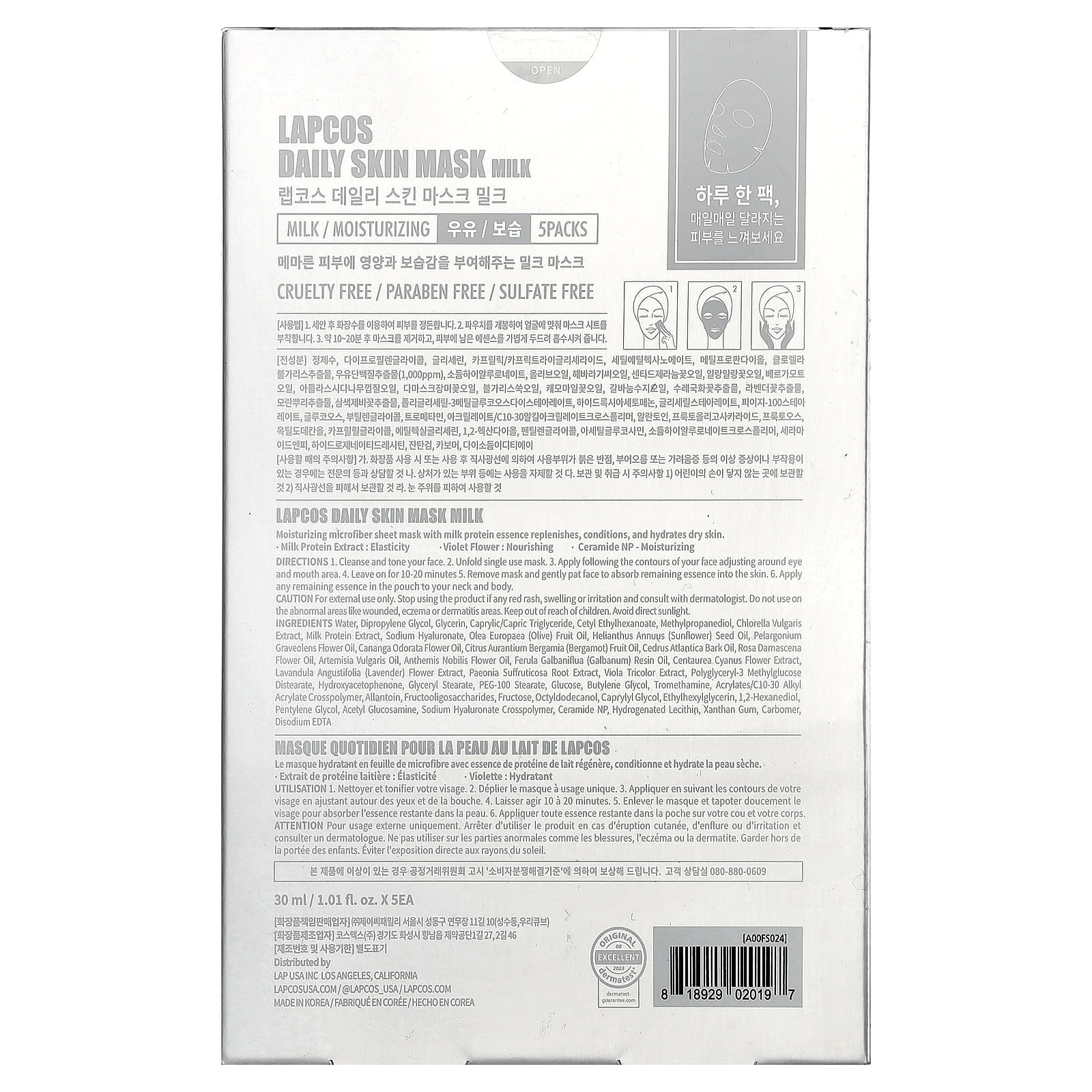 Lapcos, набор увлажняющих тканевых масок, молочный, 5 масок по 30 мл (1,01 жидк. унции)