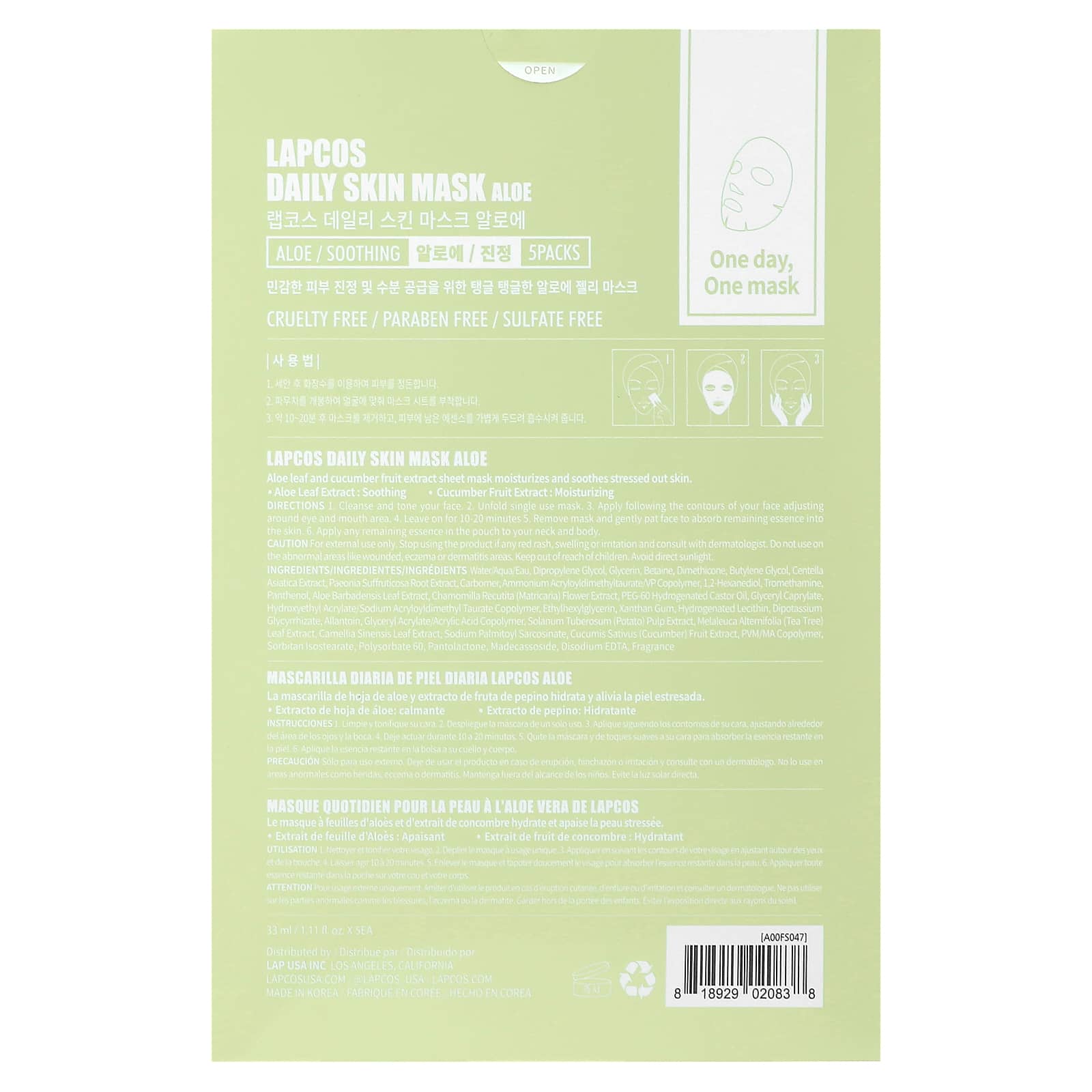 Lapcos ежедневная маска для кожи с алоэ