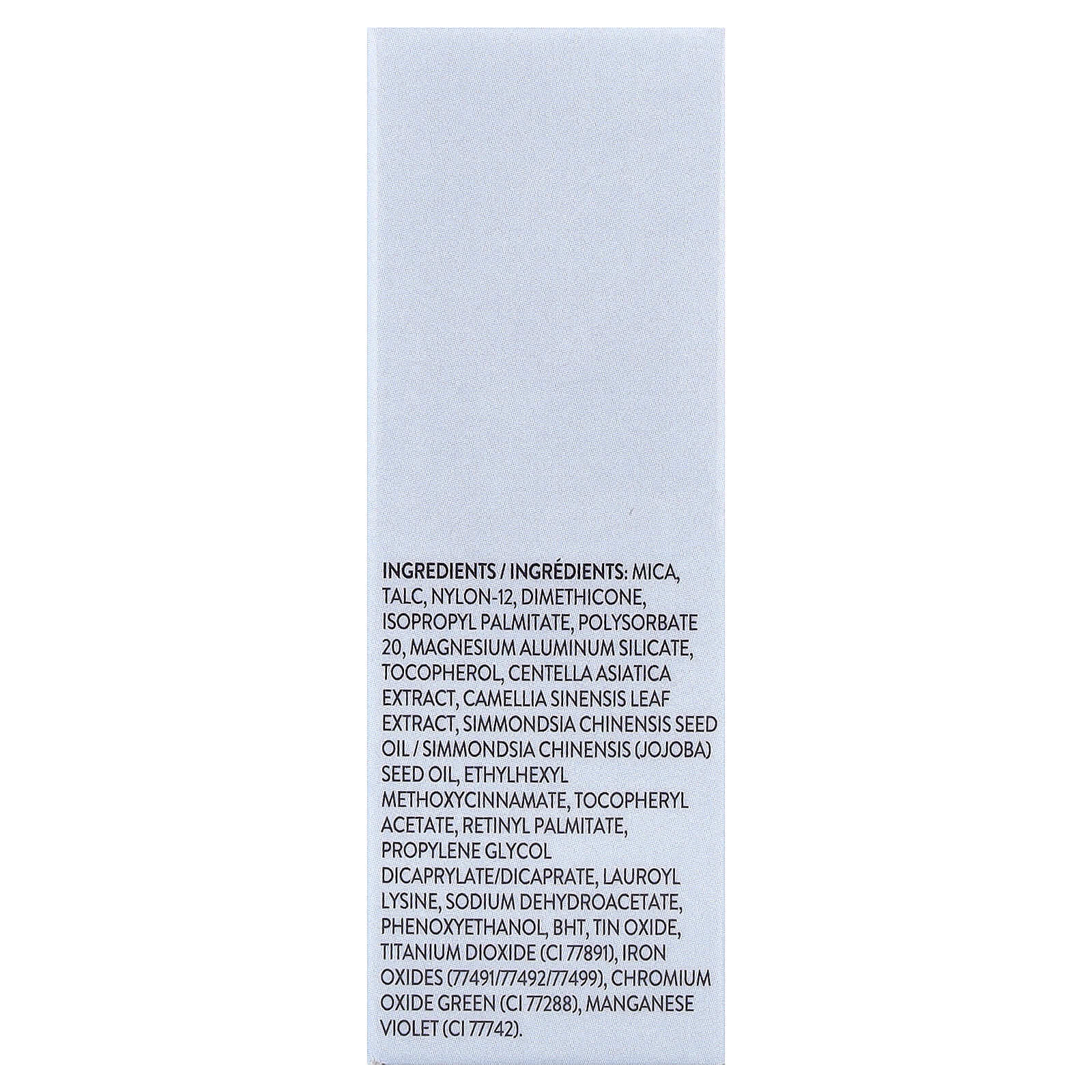 слюда, тальк, нейлон-12, диметикон, изопропилпальмитат, полисорбат 20, силикат магния и алюминия. токоферол, экстракт готу колы (Centella asiatica), экстракт листьев зеленого чая (Camellia sinensis), масло семян Simmondsia chinensis / масло семян жожоба (Simmondsia chinensis), этилгексил метоксициннамат, токоферилацетат, ретинилпальмитат, пропиленгликоль дикаприлат/дикапрат, лаурил лизин, дегидроацетат натрия, феноксиэтанол, бутилгидрокситолуол, оксид олова, диоксид титана (CI 77891), оксиды железа (77491/77492/77499), зеленый оксид хрома (CI 77288), марганцево-фиолетовый (CI 77742).