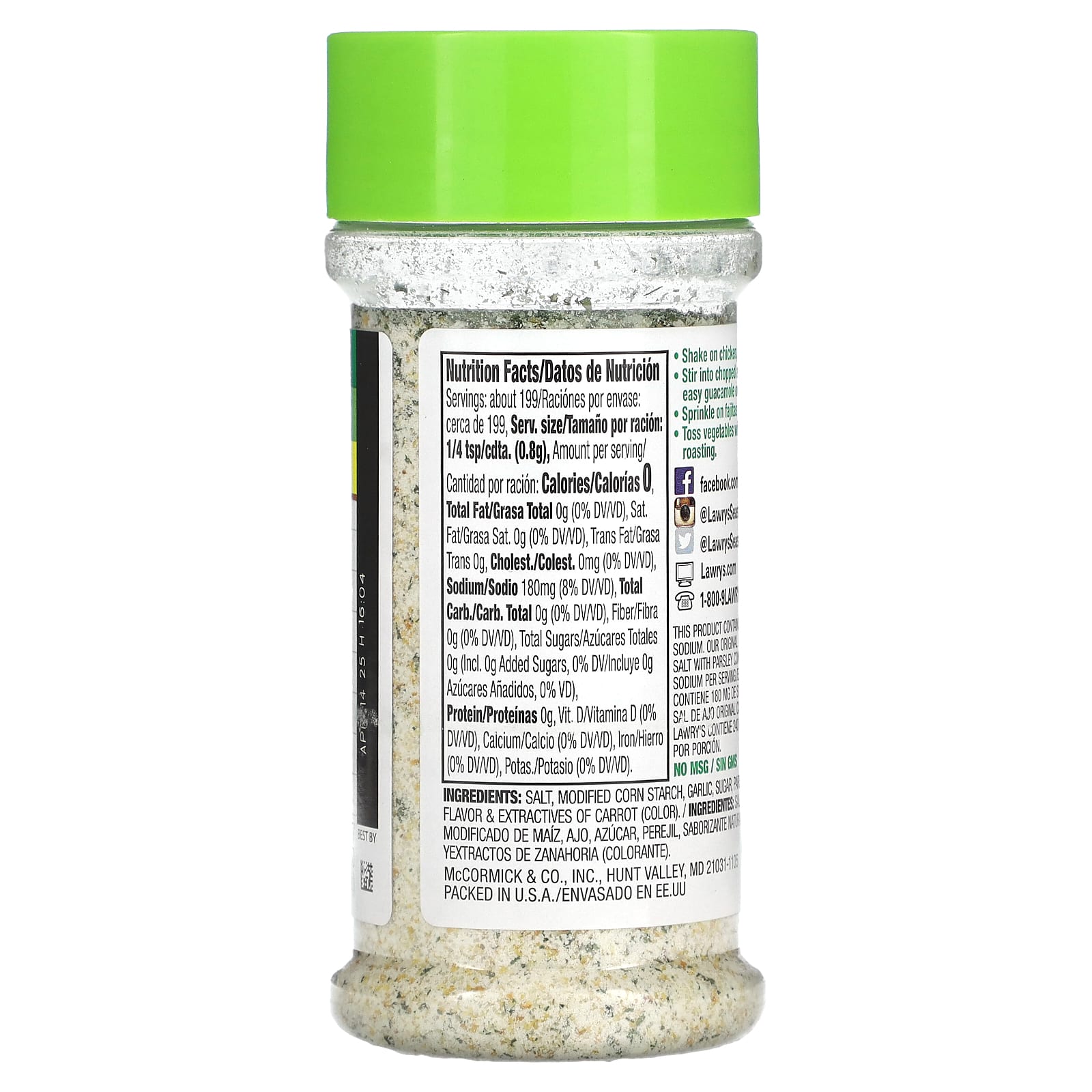 Этот продукт содержит 180 мг натрия. Наша оригинальная чесночная соль с петрушкой Lowry's содержит 240 мг натрия в 1 порции.