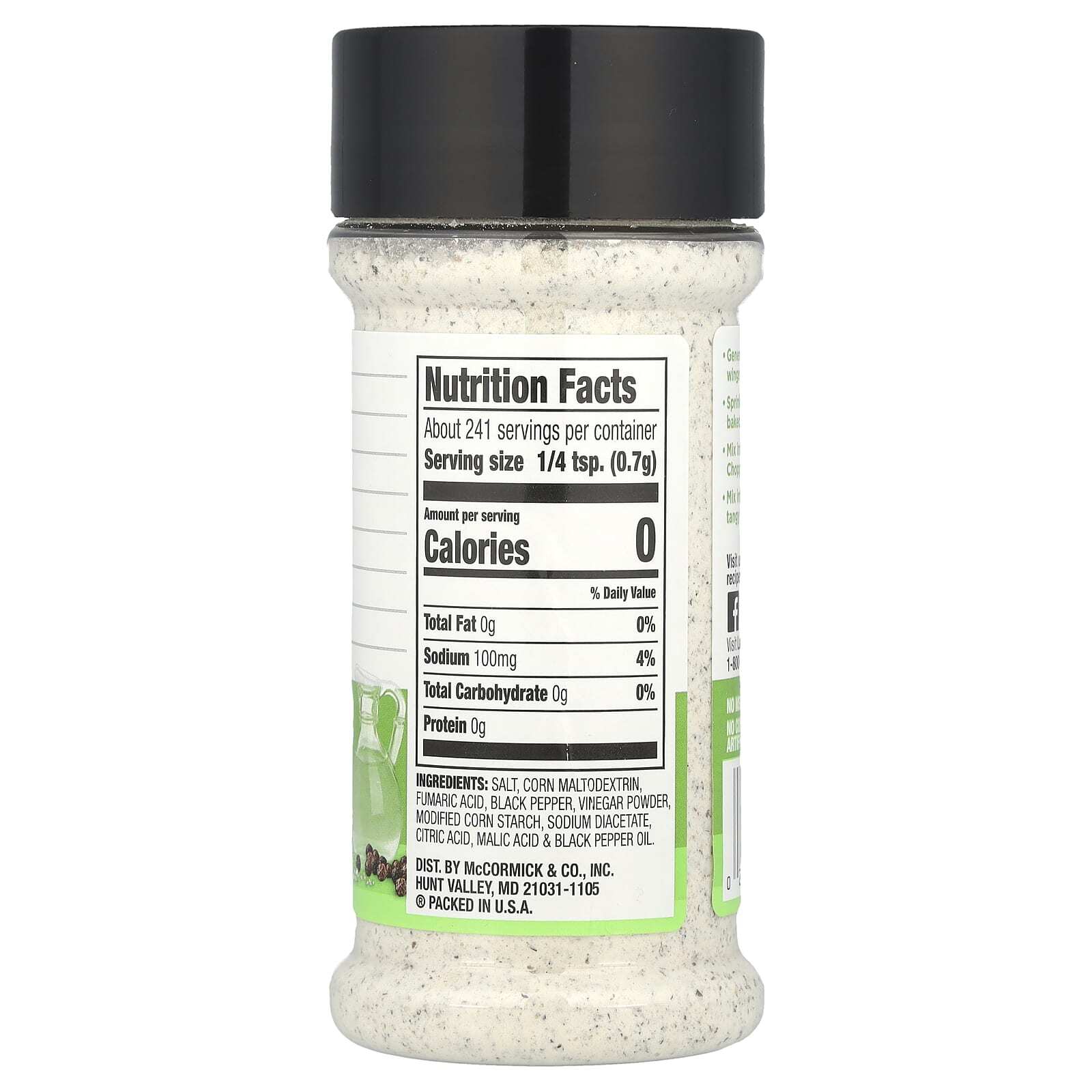 Соль, кукурузный мальтодекстрин, фумаровая кислота, черный перец, порошок уксуса, модифицированный кукурузный крахмал, диацетат натрия, лимонная кислота, яблочная кислота и масло черного перца.