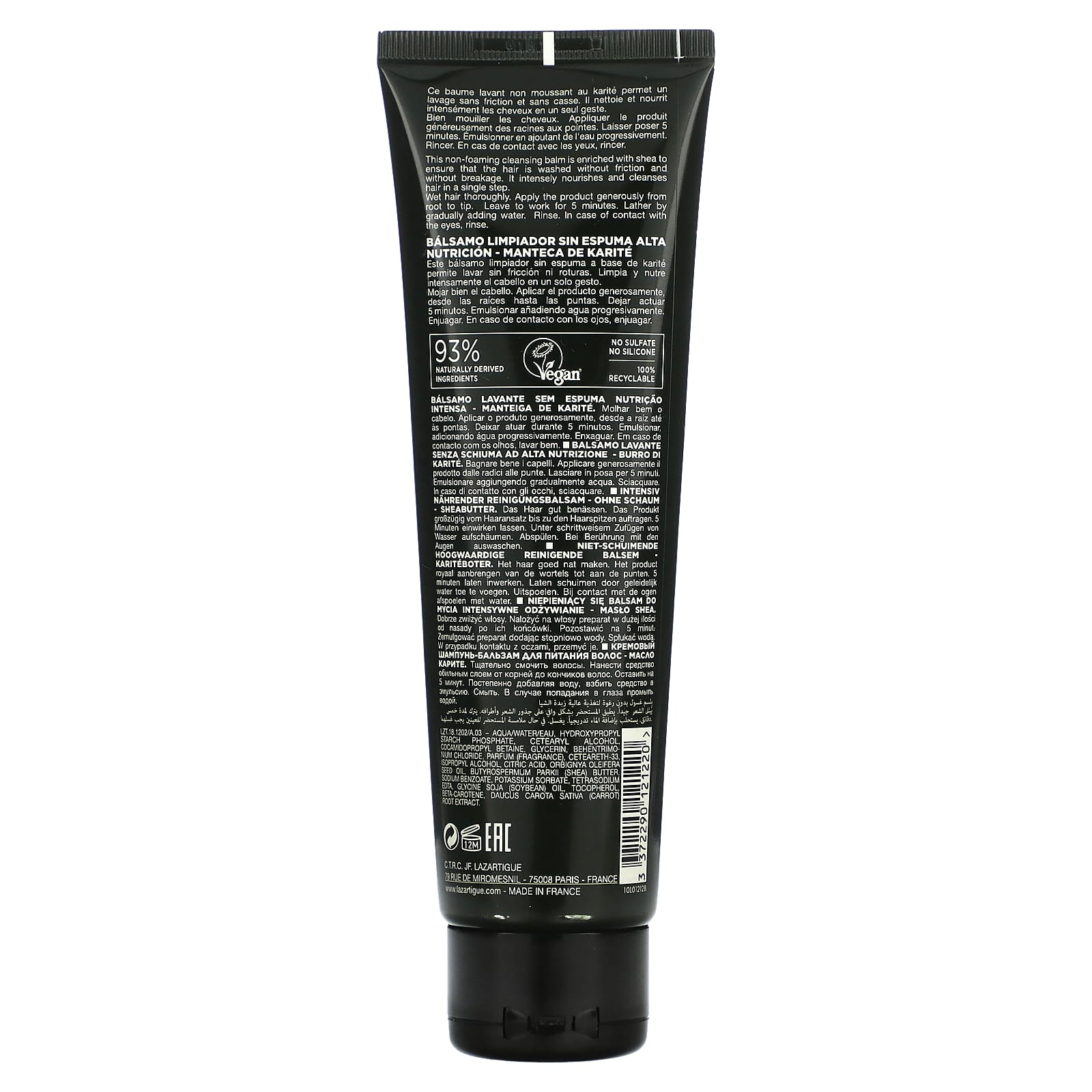 Этот непенящийся очищающий бальзам содержит масло ши, которое обеспечивает мытье волос без трения и ломкости. Интенсивно питает и очищает волосы за один раз.
