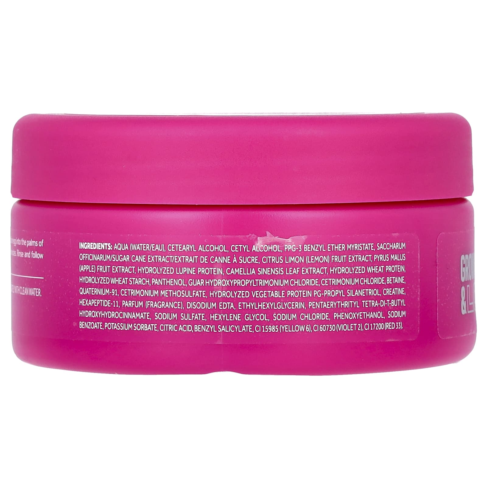 Вода, цетеариловый спирт, цетиловый спирт, ППГ-3 бензилового эфира миристат, экстракт сахарного тростника (Saccharum officinarum), экстракт плодов лимона (Citrus limon), экстракт яблока (Pyrus malus), гидролизованный белок люпина (Lupinus perennis), экстракт листьев зеленого чая (Camellia sinensis), гидролизованный протеин из пшеницы, гидролизованный пшеничный крахмал, пантенол, гуар гидроксипропилтримония хлорид, цетримония хлорид, бетаин, кватерниум-91, цетримония метосульфат, гидролизованный растительный белок ПГ-пропил силантриол, креатин, гексапептид-11, парфюмерная композиция (отдушка), двунатриевая ЭДТК, этилгексилглицерин, пентаэритритил тетра-ди-трет-бутил гидроксигидроциннамат, сульфат натрия, гексиленгликоль, хлорид натрия, феноксиэтанол, бензоат натрия, сорбат калия, лимонная кислота, бензилсалицилат, краситель желтый 6 (CI 15985), краситель фиолетовый 2 (CI 60730), краситель красный 33 (CI 17200).