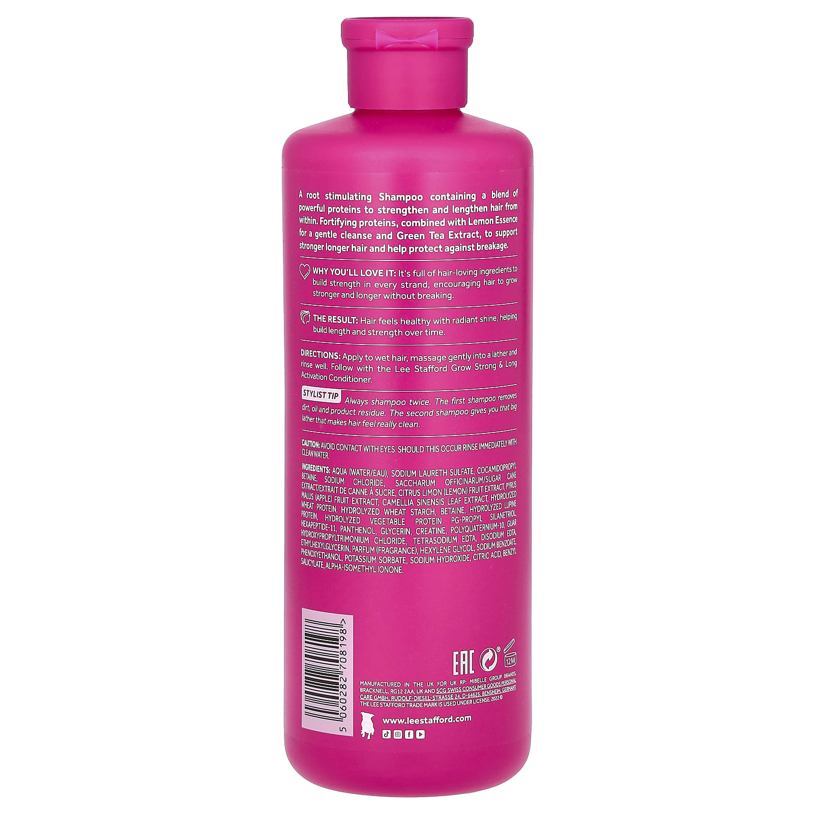 Нанесите на влажные волосы, аккуратно распределите массажными движениями, образуя пену, и хорошо смойте. Затем используйте кондиционер для активации роста и силы роста волос Lee Stefford.